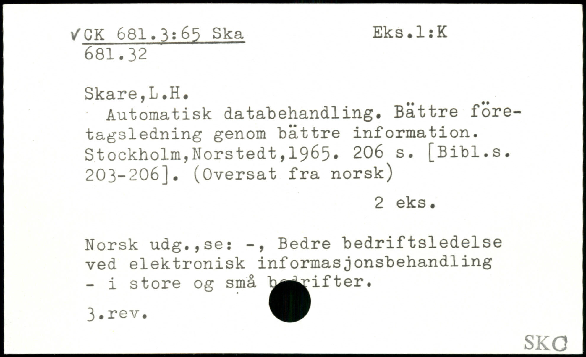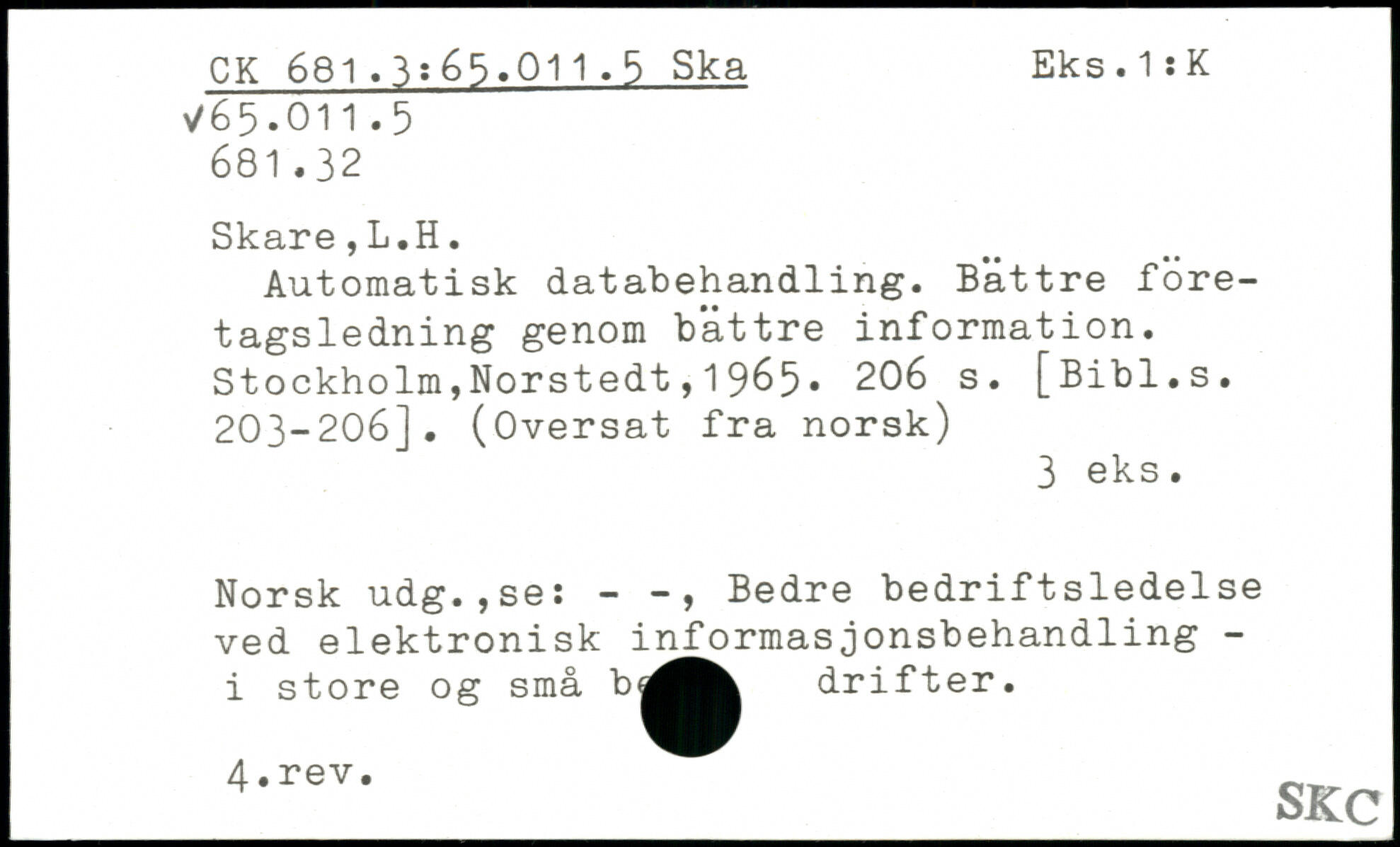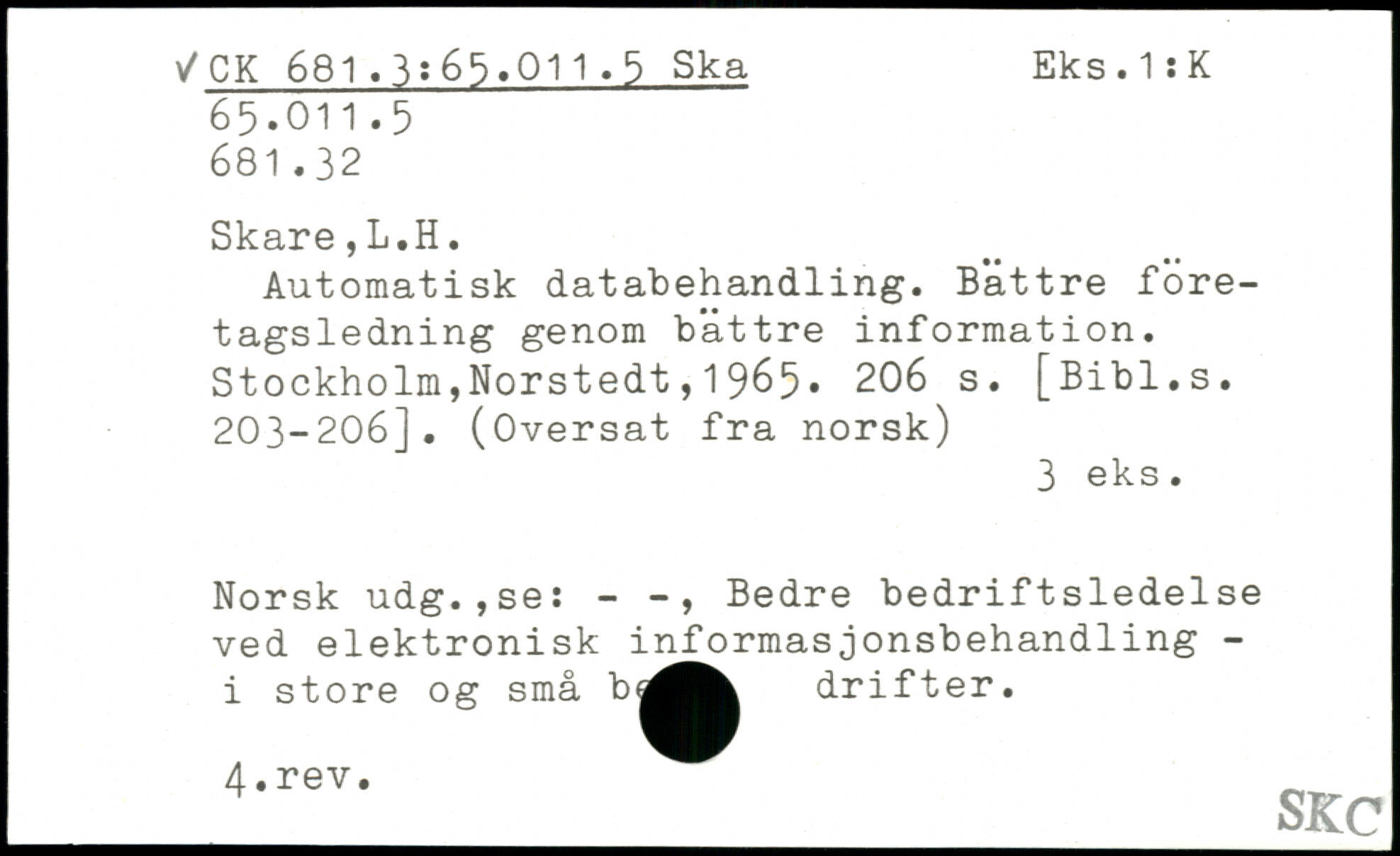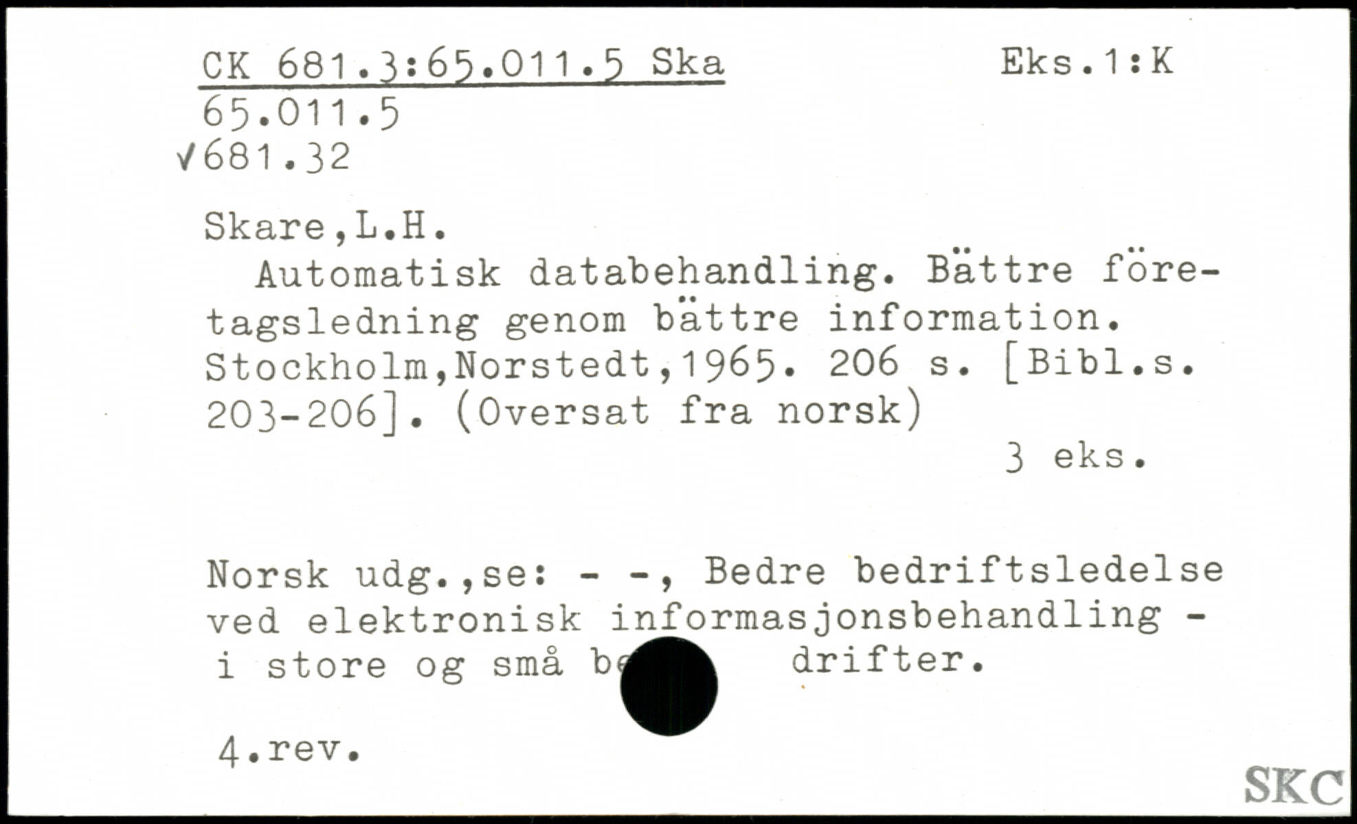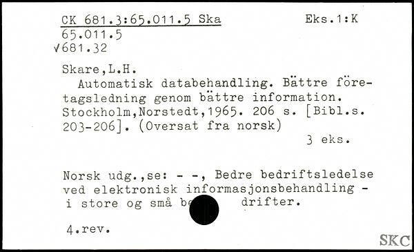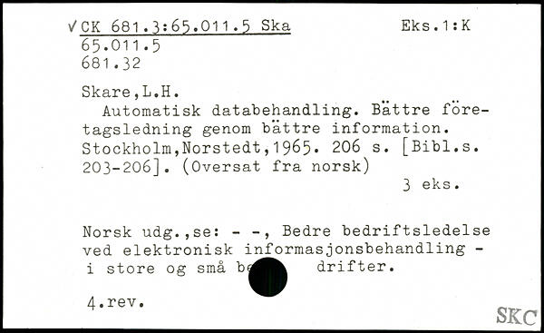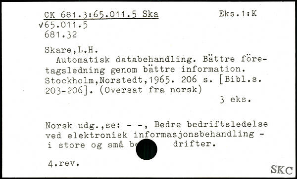 Automatisk databehandling. Bättre företagsledning genom bättre information.