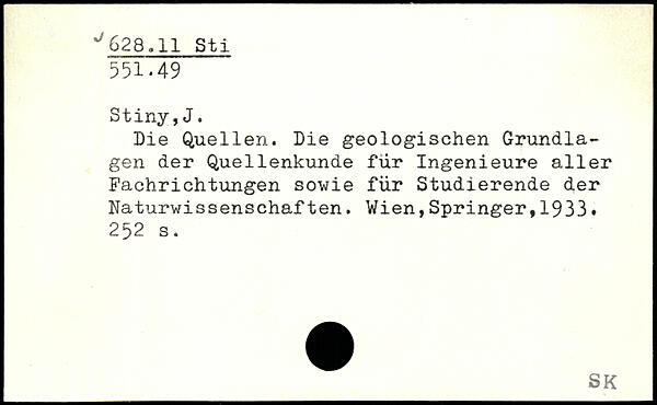 Die Quellen. Die geologischen Grundlagen der Quellenkunde für Ingenieure aller Fachrichtungen sowie für Studierende der Naturwissenschaften.