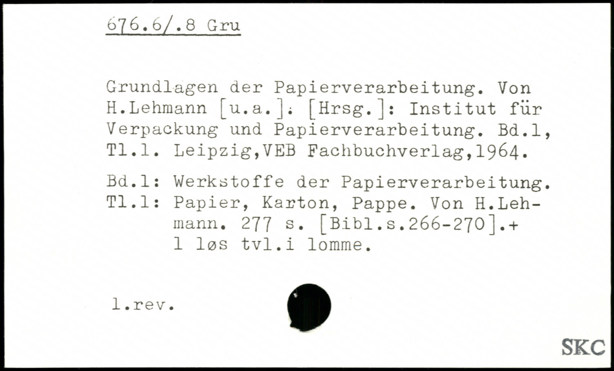 Grundlagen der Papierverarbeitung. Von H.Lehmann [u.a.]; [Hrsg.]: Institut für Verpackung und Papierverarbeitung. Bd.l, Tl.l.