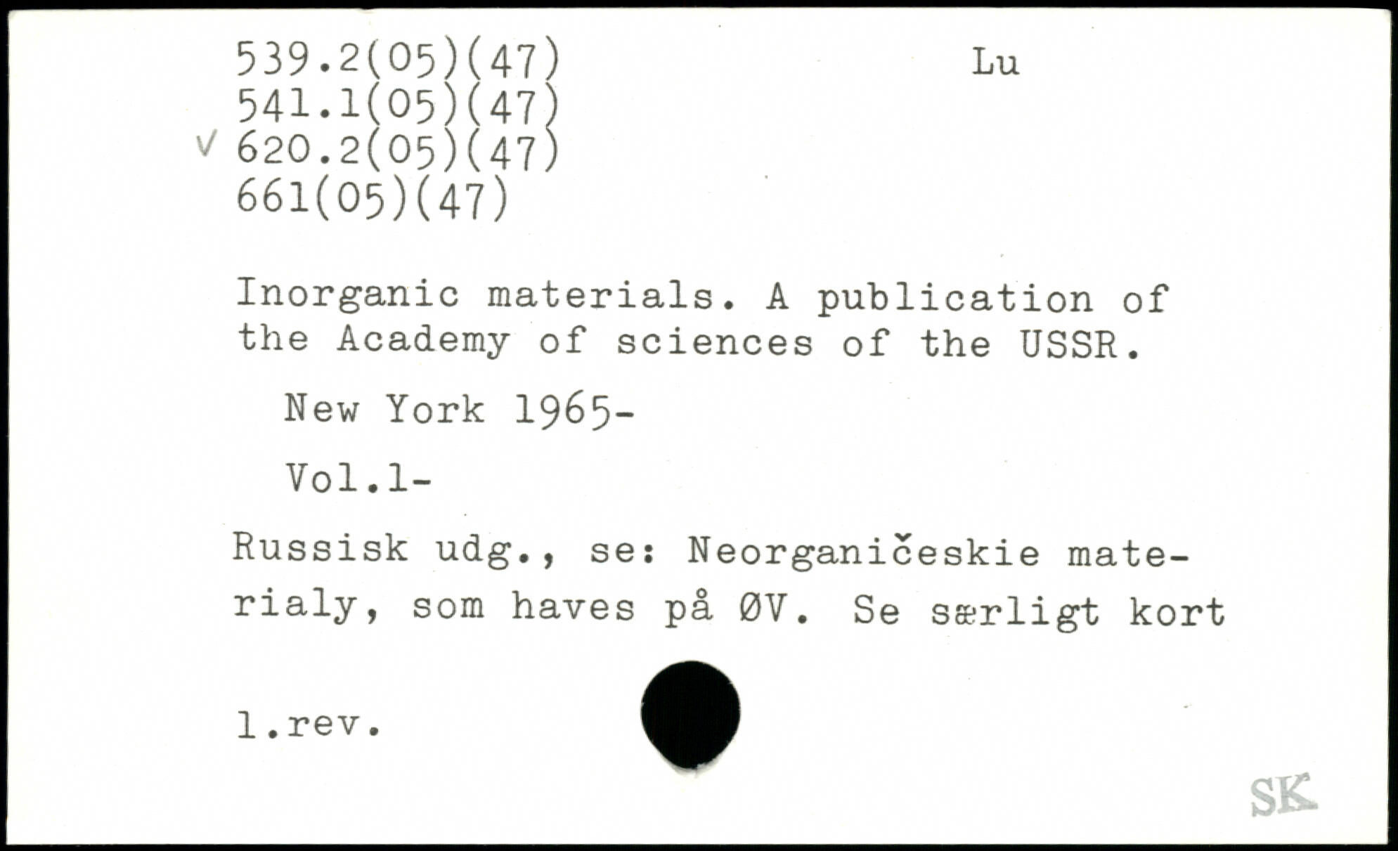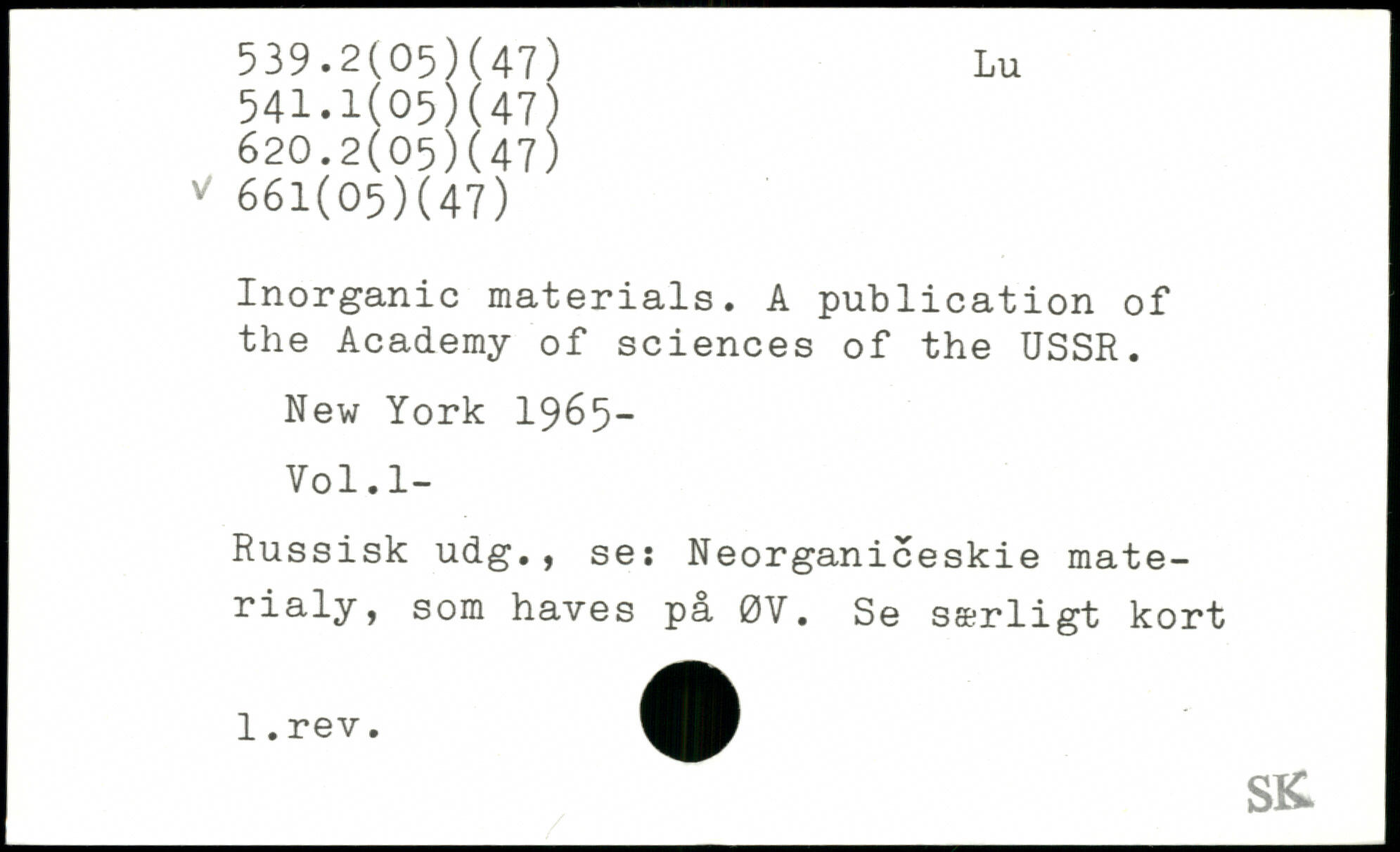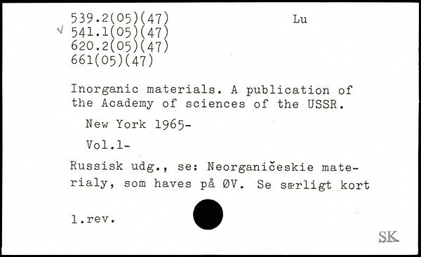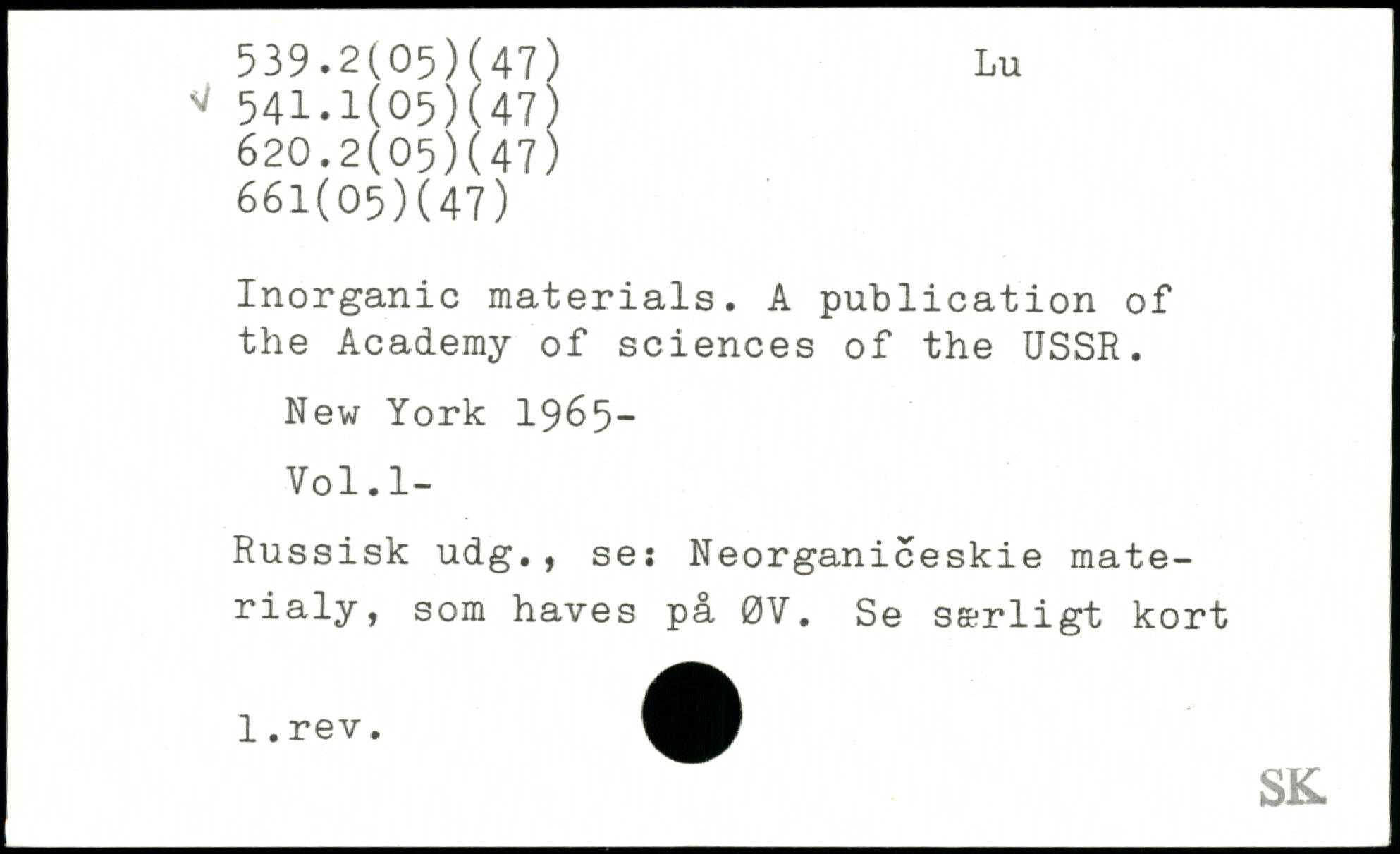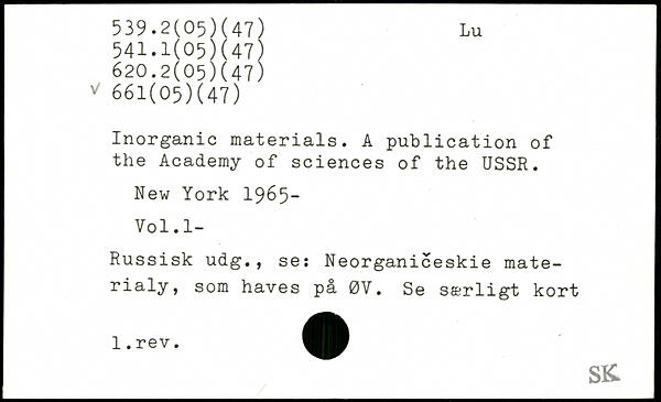 Inorganic materials. A publication of the Academy of sciences of the USSR.