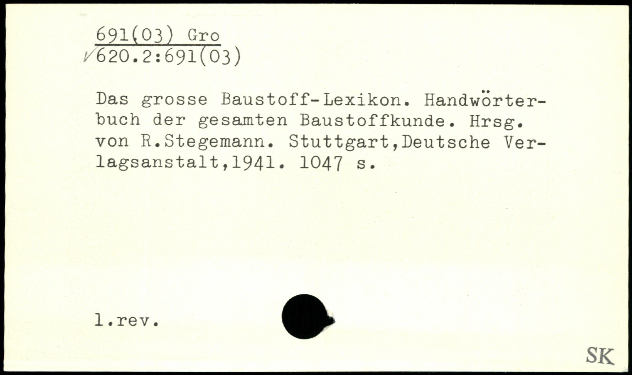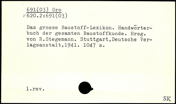 Das grosse Baustoff-Lexikon. Handwörterbuch der gesamten Baustoffkünde. Hrsg, von R.Stegemann.