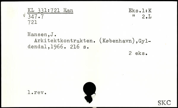 Arkitektkontrakten. (København),Gyldendal, 1966.
