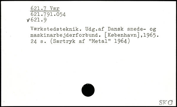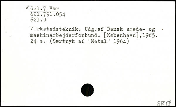 Værkstedsteknik. Udg.af Dansk smede- og maskinarbejderforbund.