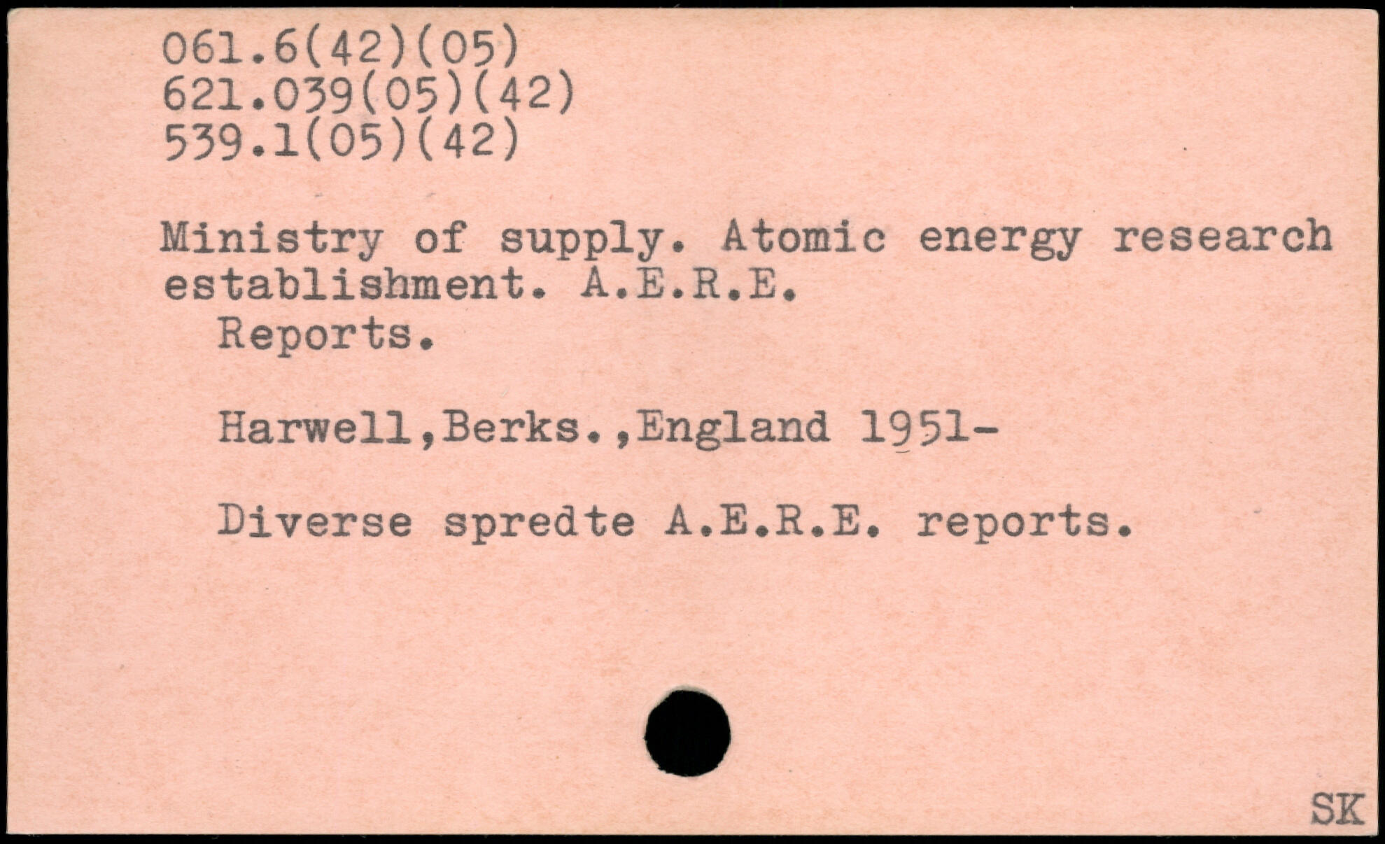 Ministry of supply. Atomic energy research establishment. A.E.R.E. Reports. Harwell,Berks.,England 1951-Diverse spredte A.E.R.E. reports.