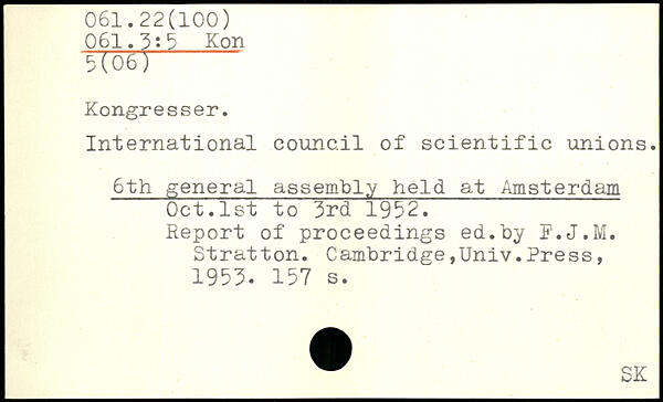 International council of scientific unions. 6th general assembly held at Amsterdam Oct.1st to 3rd 1932. Report of proceedings ed.by i’.J.M. Stratton. Cambridge,Univ.Press, 1993.