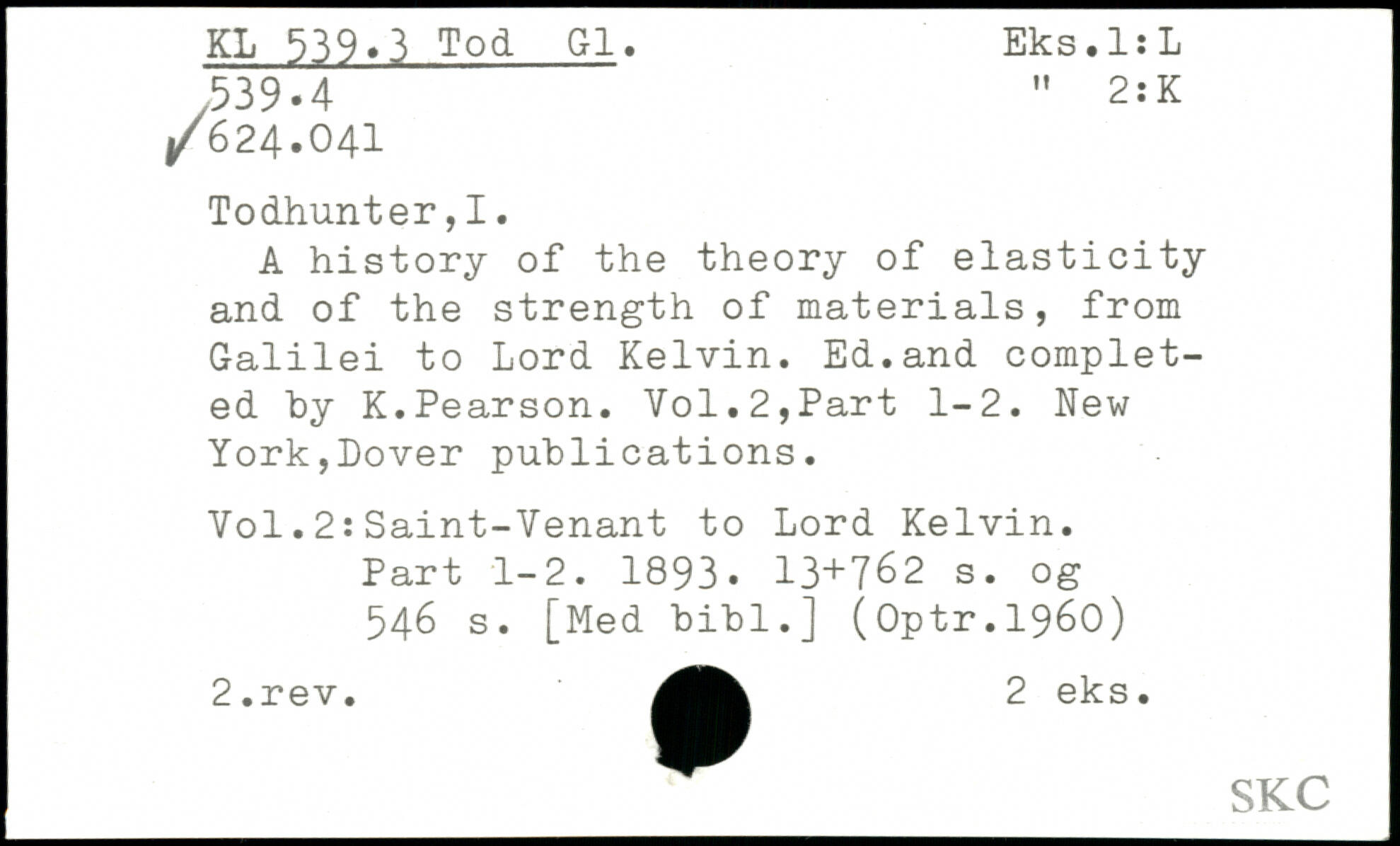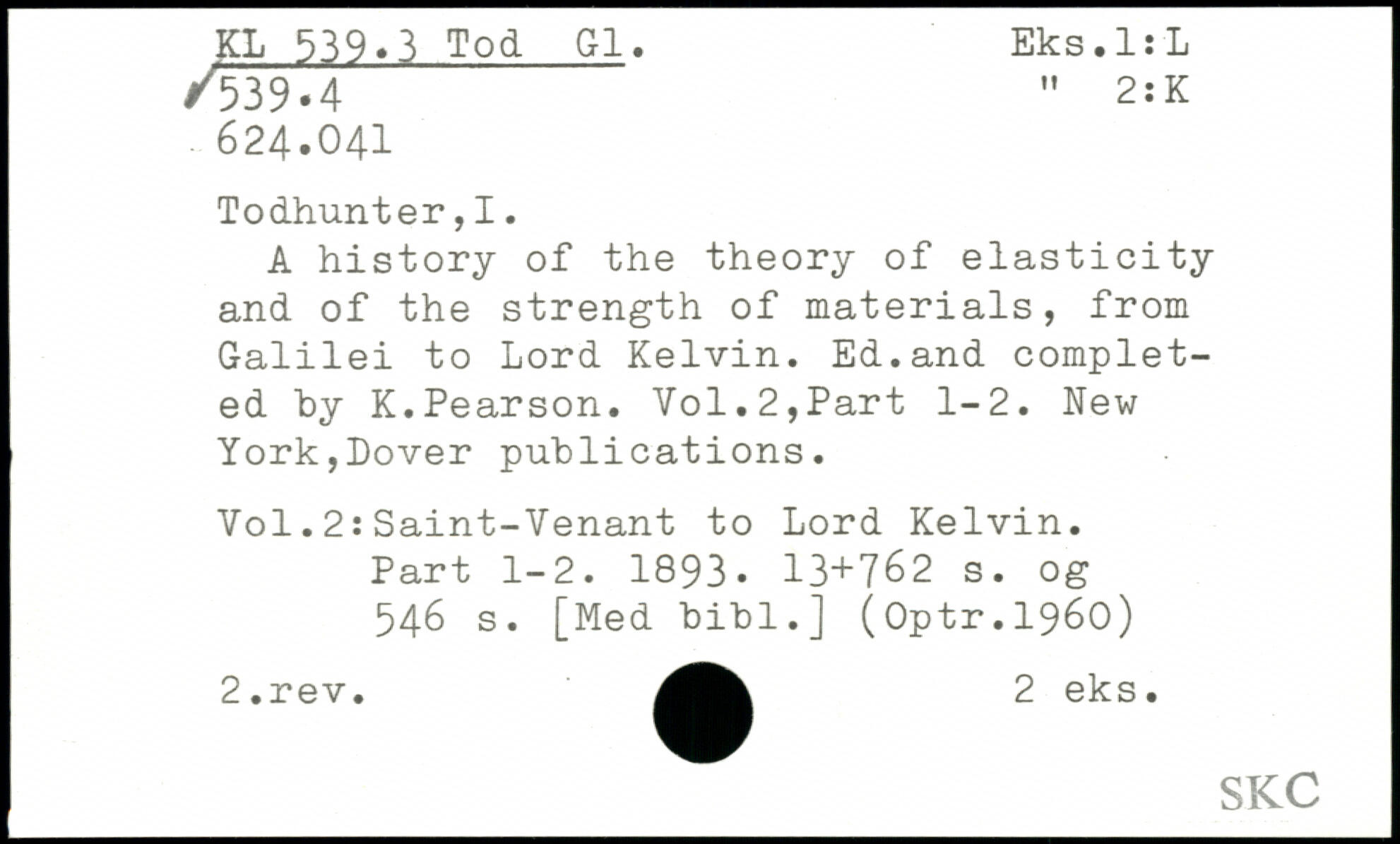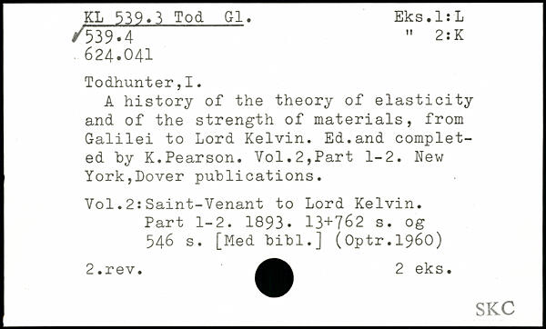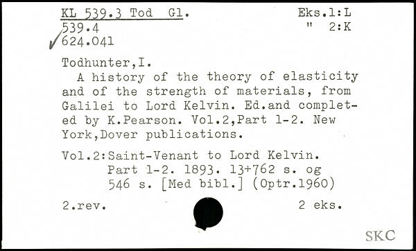 A history of the theory of elasticity and of the strength of materials, from Galilei to Lord Kelvin. Ed.and completed by K.Pearson.