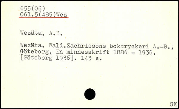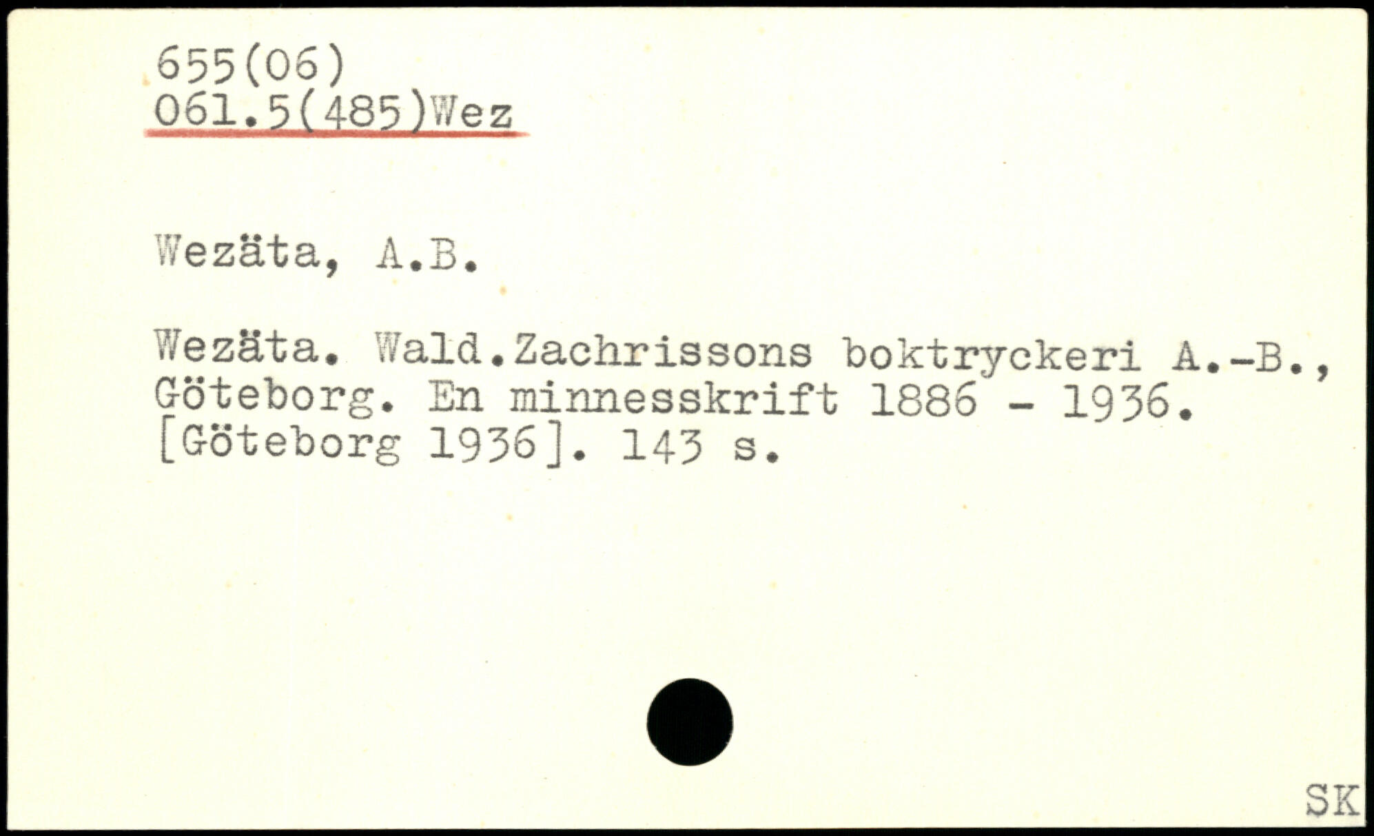 Wezäta. Wald.Zachrissons boktryckeri A.-B., Göteborg. En minnesskrift 1886 - 1936. [Göteborg 1936].