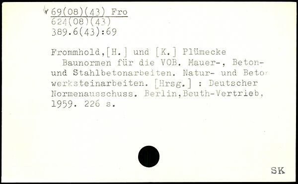 Frommhold,[H.j und [K.] Plümecke Baunormen für die VOB. Mauer-, Beton-und Stahlbetonarbeiten. Natur- und Beto' werksteinarbeiten. [Hrsg. J : Deutscher Normenausschuss.