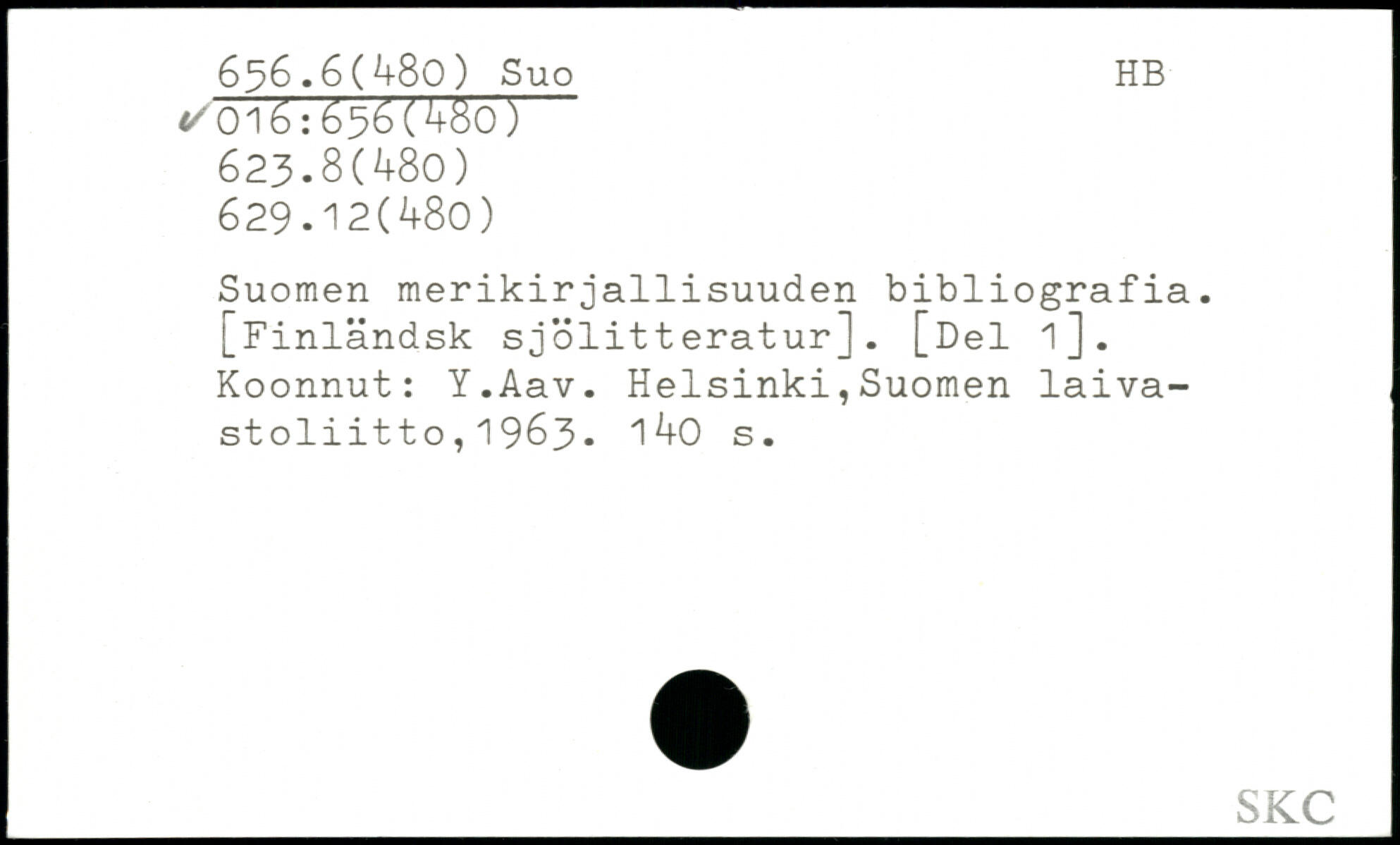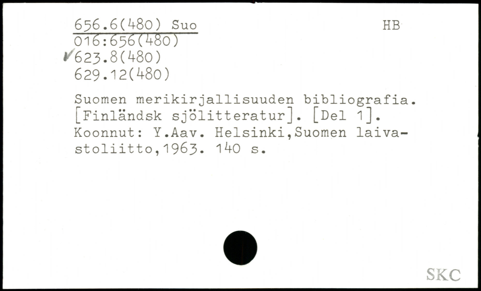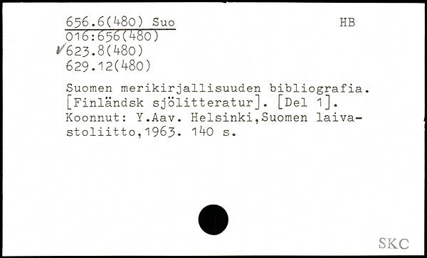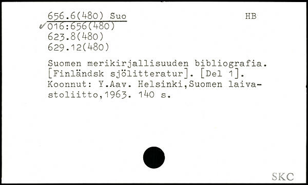 Suomen merikirjallisuuden bibliografia. [Finländsk sjölitteratur]. [Del i]. Koonnut: Y.Aav.