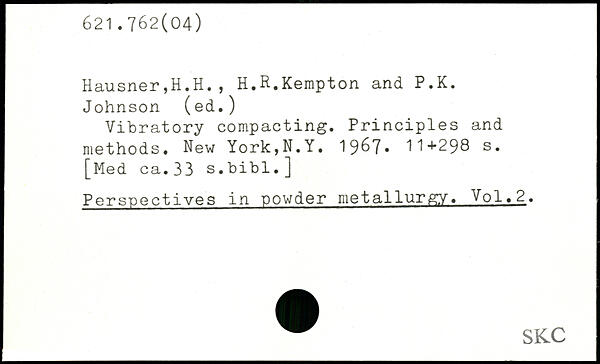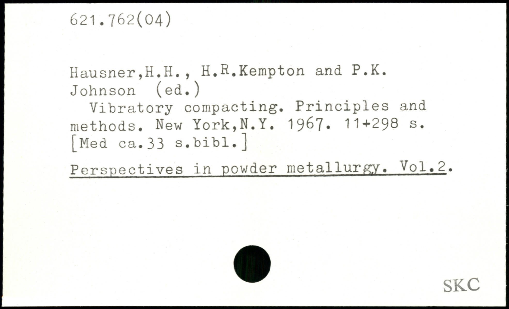 Hausner,H.H., H.H.Kempton and P.K. Johnson (ed.) Vibratory compacting. Principles and methods. New York,N.Y. 1967