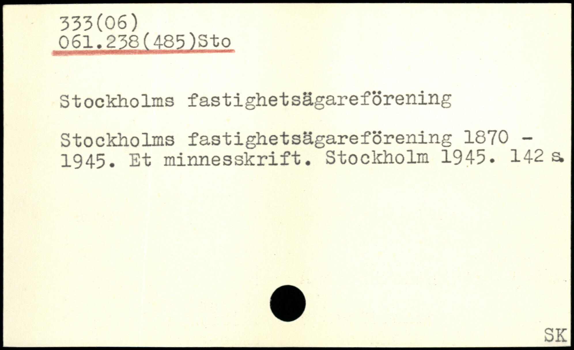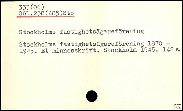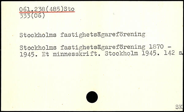 Stockholms fastighetsägareförening Stockholms fastighetsägareförening 1870 -1945. Et minnesskrift.