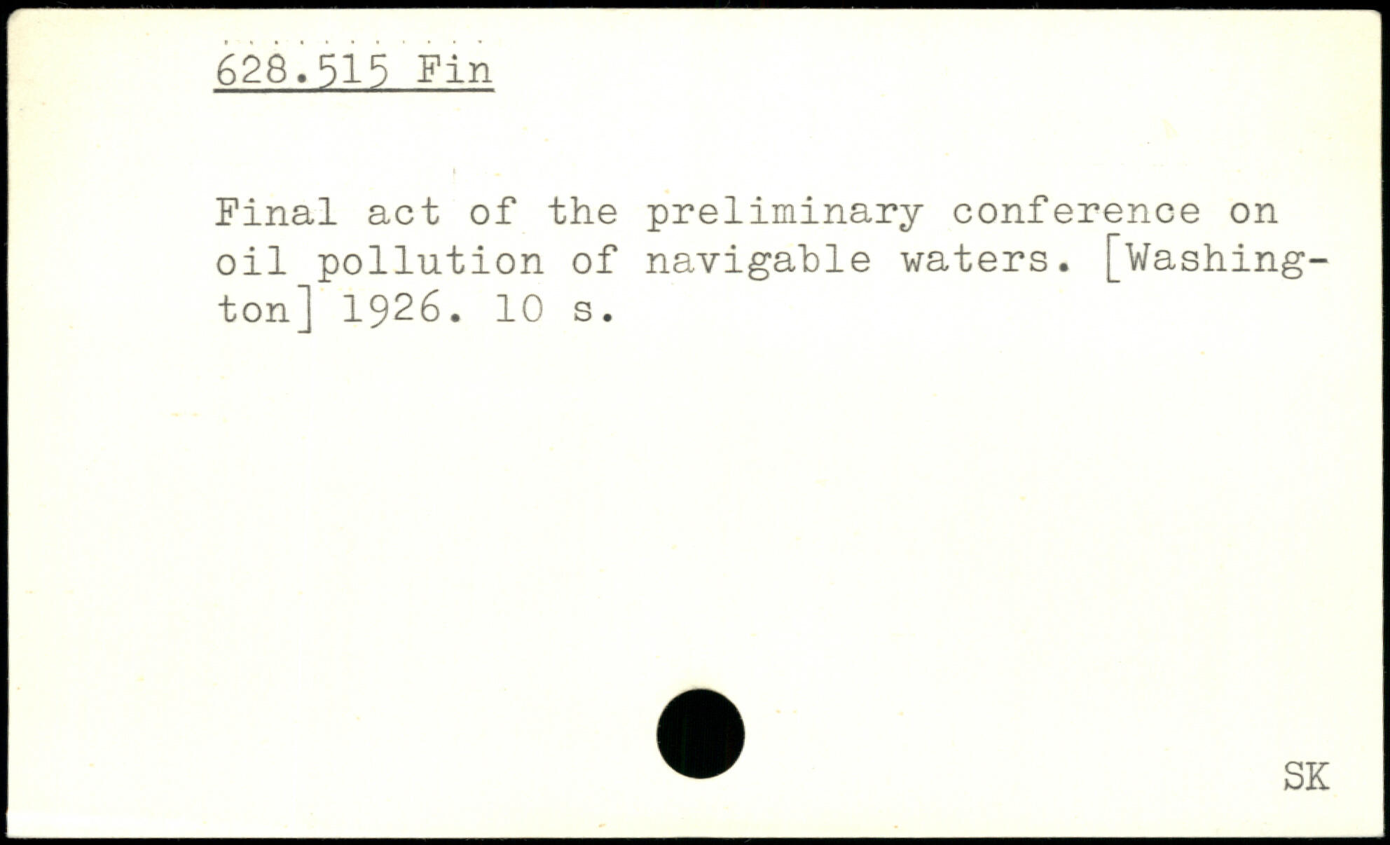 Final act of the preliminary conference on oil pollution of navigable waters.