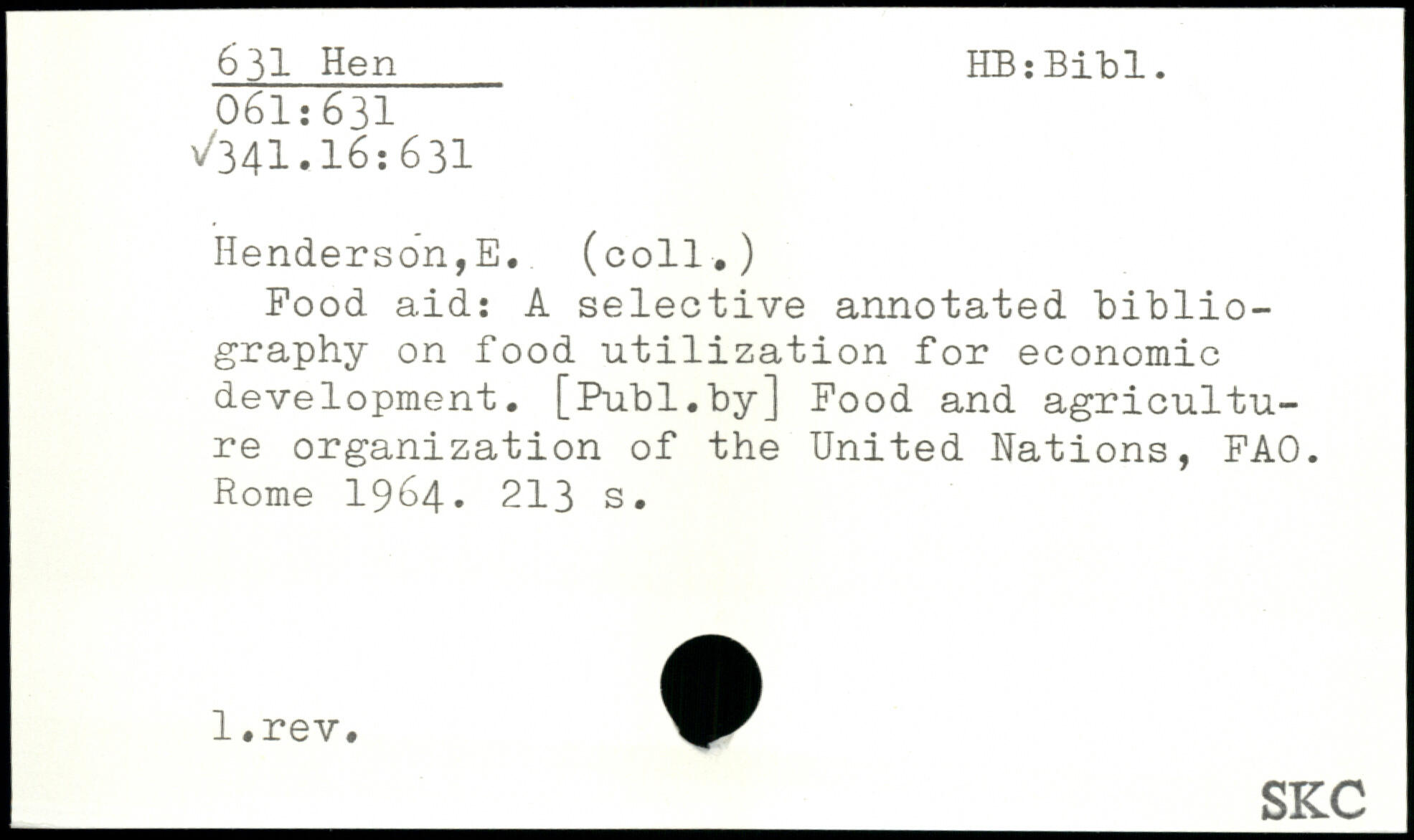 Pood aid: A selective annotated bibliography on food utilization for economic development. [Pu.bl.by] Pood and agriculture organization of the United Nations, PAO. Rome 1964.