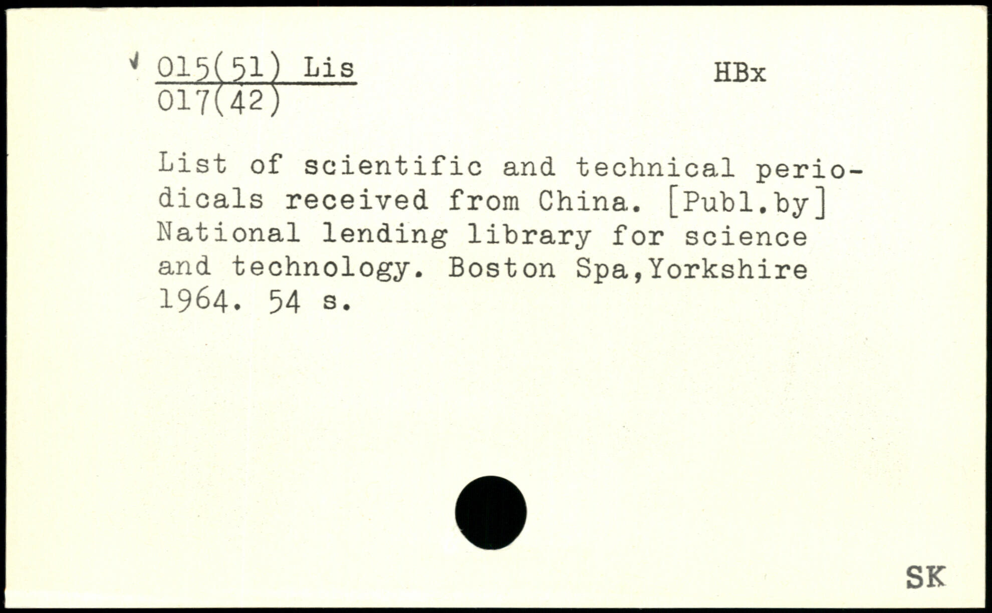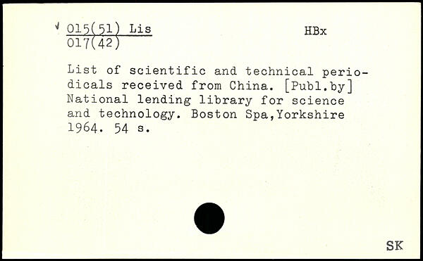 List of scientific and technical periodicals received from China.