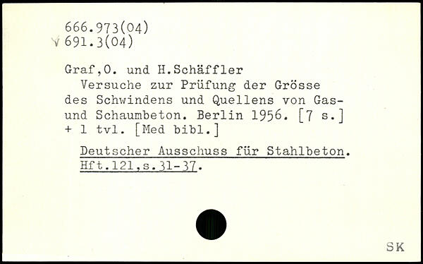 Versuche zur Prüfung der Grösse des Schwindens und Quellens von Gas-und Schaumbeton.