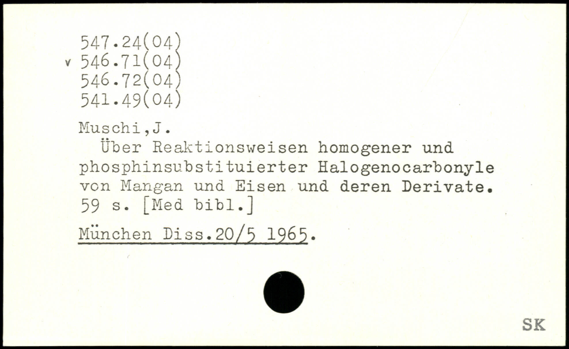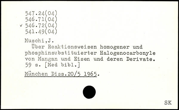 Über Reaktionsweisen homogener und phosphinsubstituierter Halogenocarbonyle von Mangan und Eisen und deren Derivate.