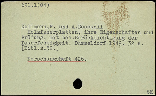 Kollmann,F. und A.Dosoudil. Holzfaserplatten, ihre Eigenschaften und Prüfung, mit bes.Berücksichtigung der Dauerfestigkeit. Düsseldorf 1949.