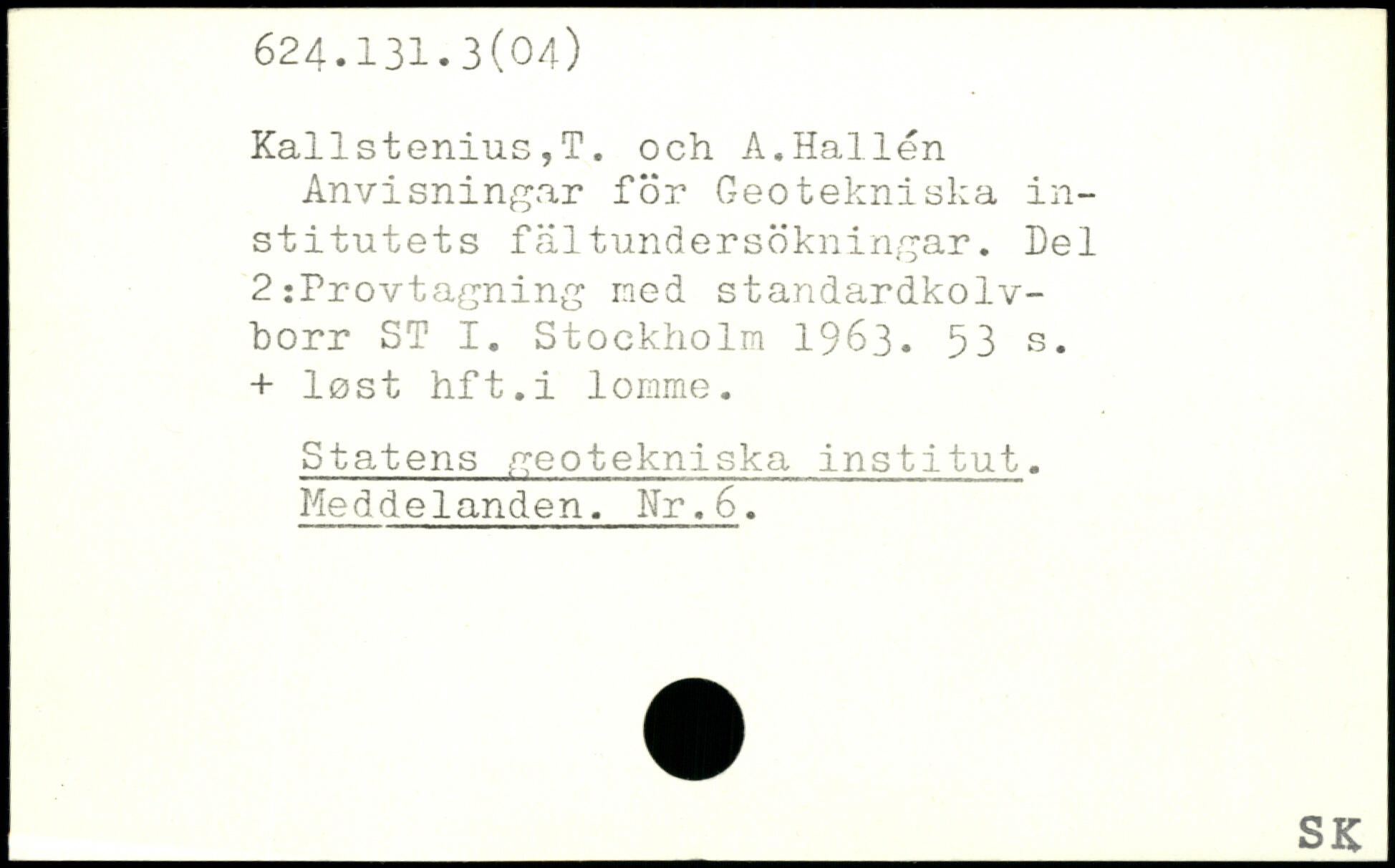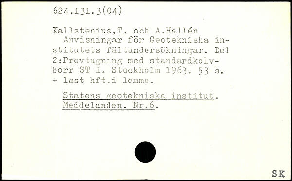 Anvisningar för Geotekniska institutets fältundersökningar. Del 2jProvtagning ned standardkolv-borr ST I.
