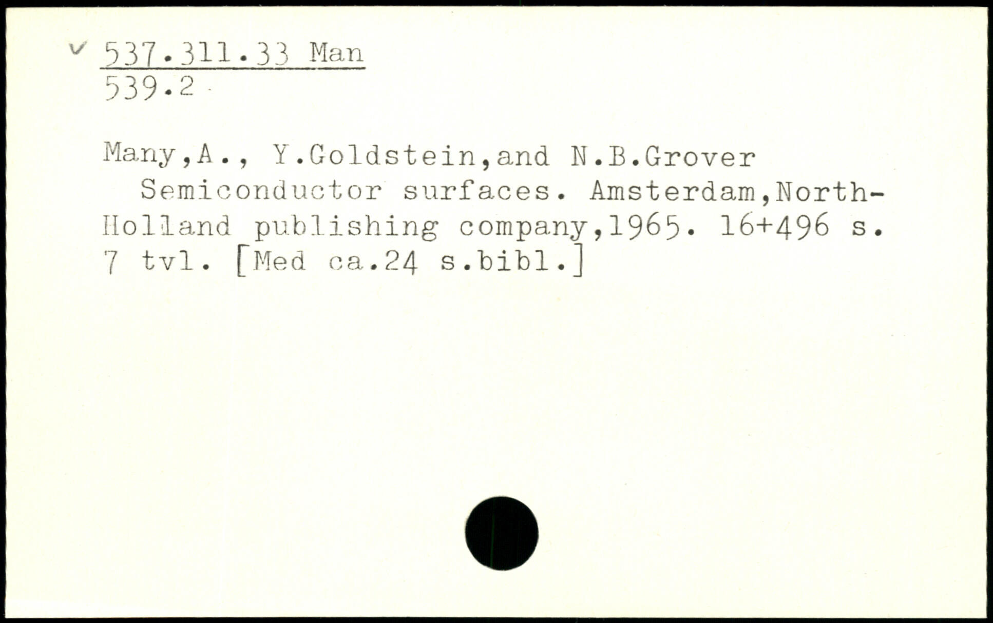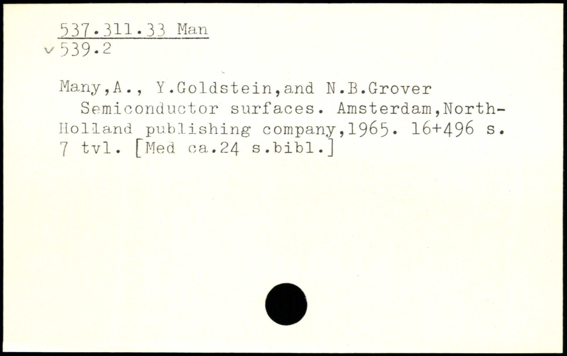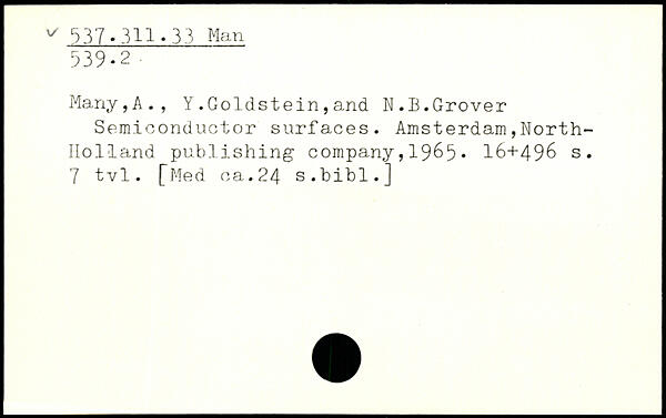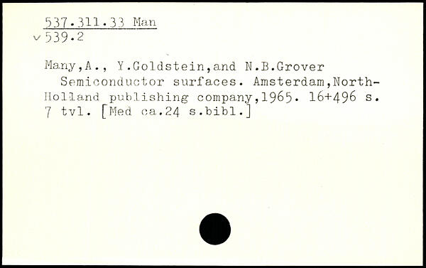 Many,A., Y.Goldstein,and W.B.Grover Semiconductor surfaces.