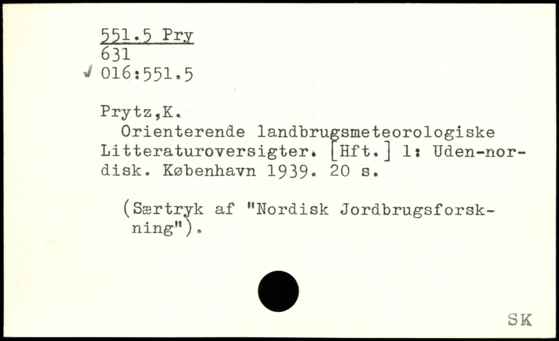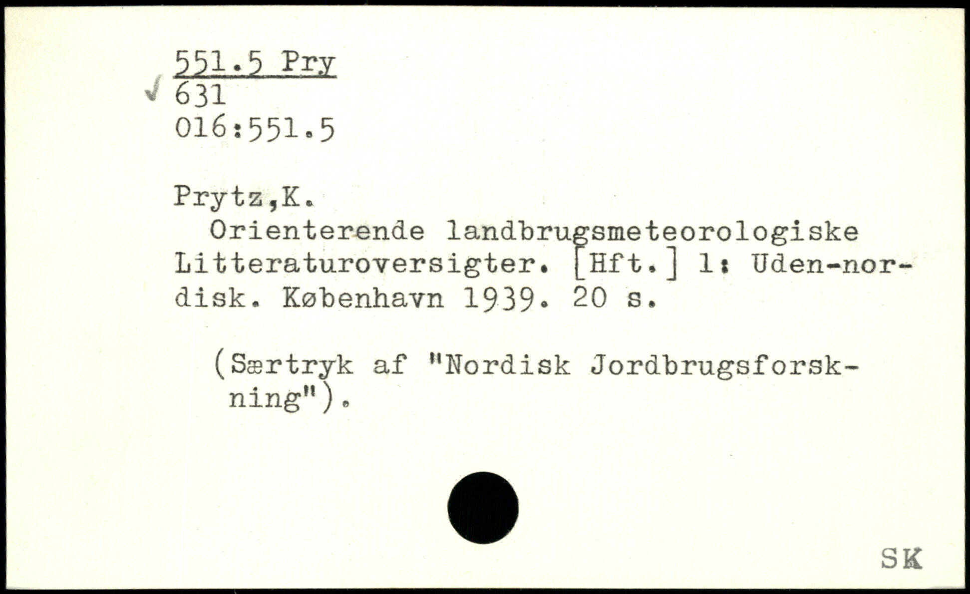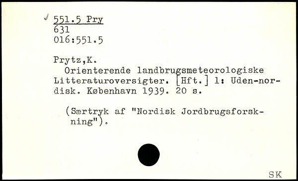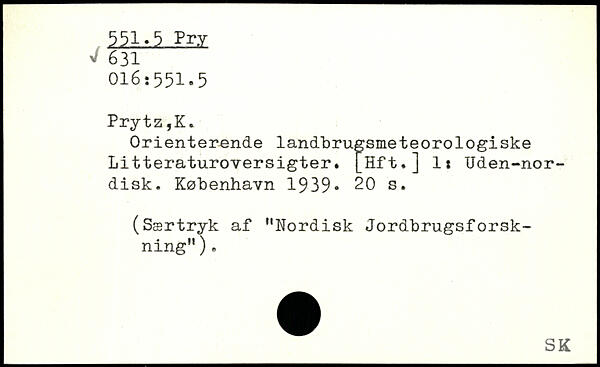 Orienterende landbrugsmeteorologiske Litteraturoversigter. [Hft.] 1: Uden-nor-disk.