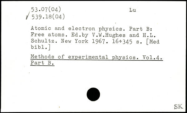 Atomic and electron physics. Part B: Free atoms. Ed.by V.W.Hughes and H.L. Schultz.
