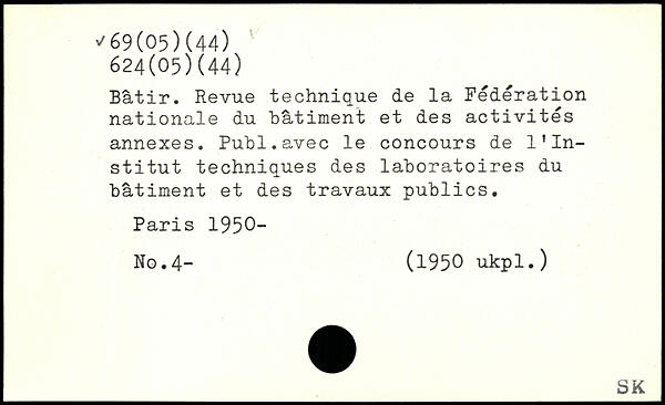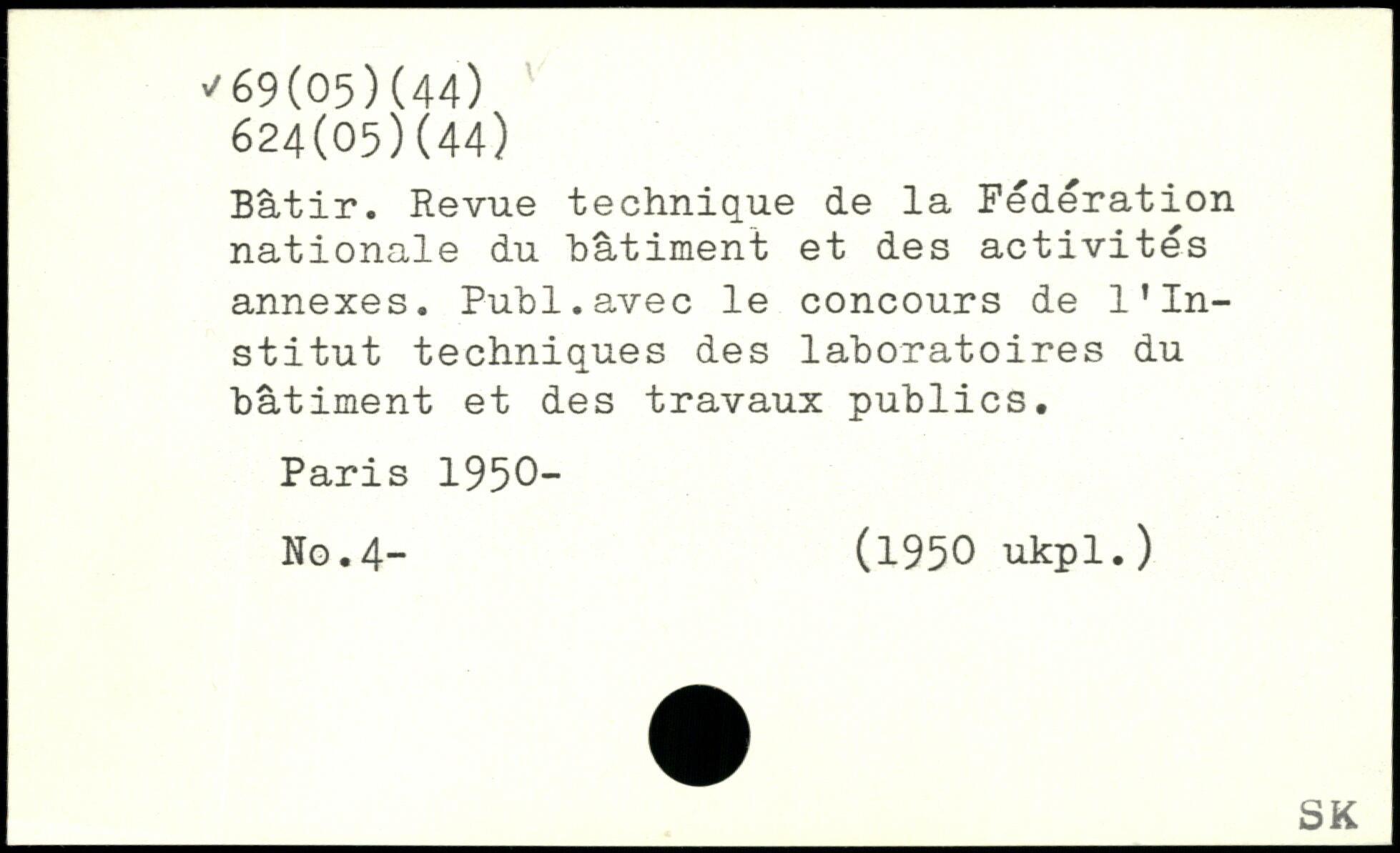 Bâtir. Revue technique de la Fédération nationale du bâtiment et des activités annexes. Publ.avec le concours de l'Institut techniques des laboratoires du bâtiment et des travaux publics.