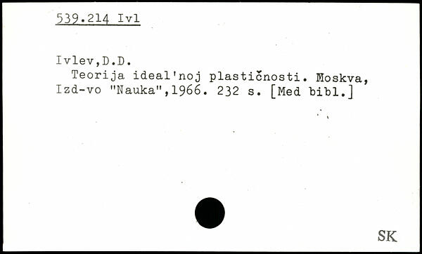 Teorija ideal'noj plasticnosti. Moskva, Izd-vo MNauka",1966.