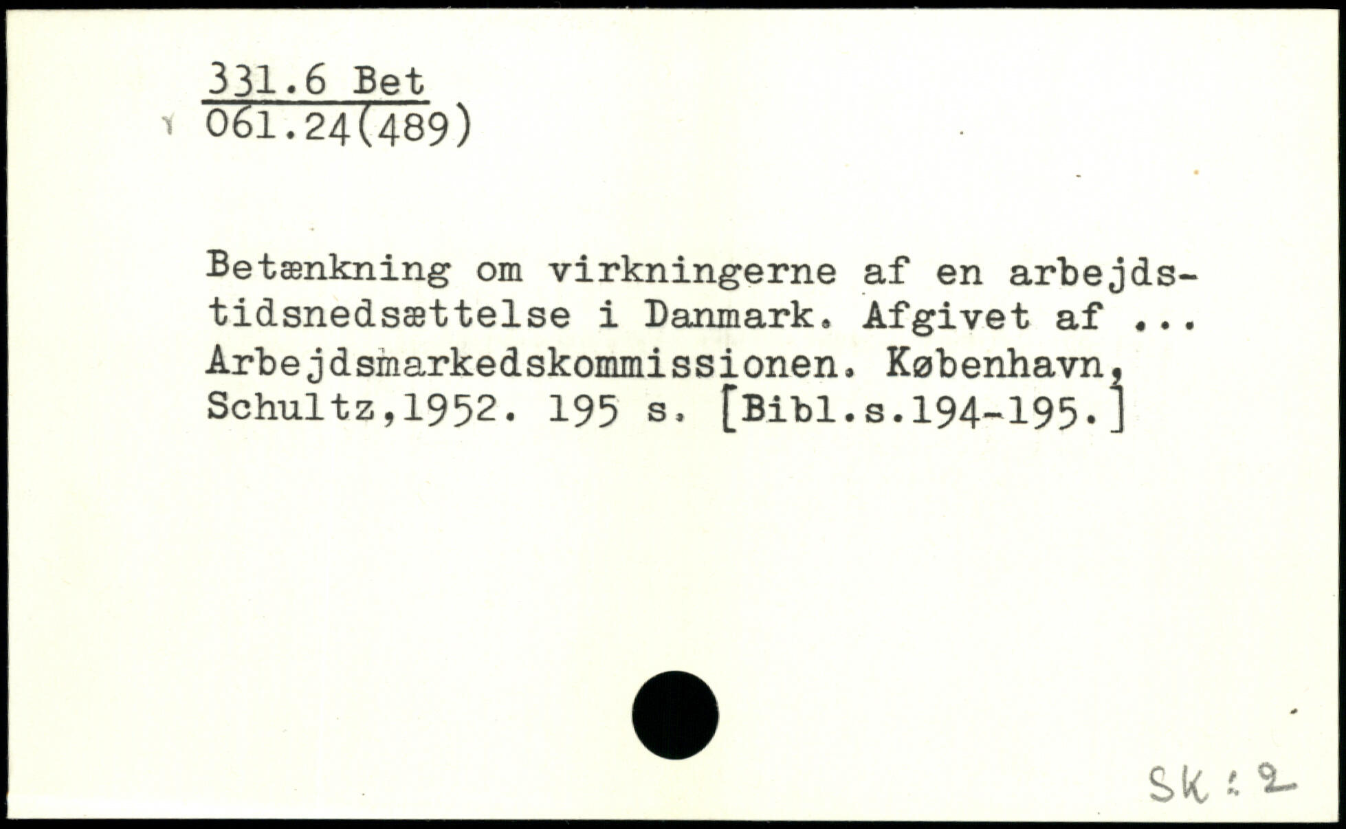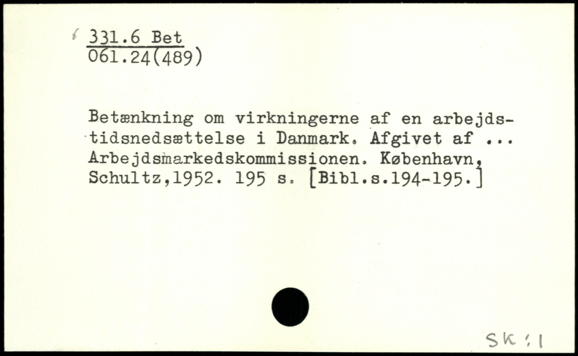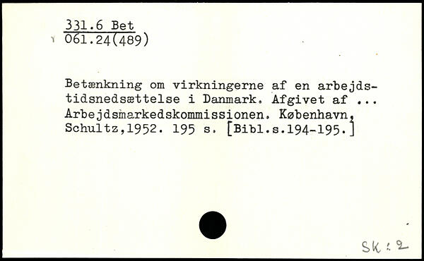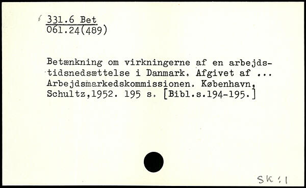 Betænkning om virkningerne af en arbejdstidsnedsættelse i Danmark. Afgivet af ... Arbejdsmarkedskommissionen.