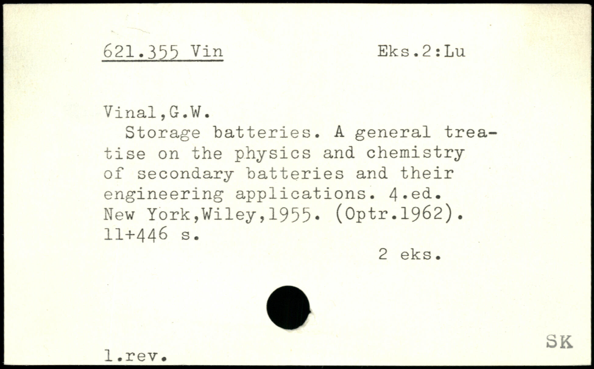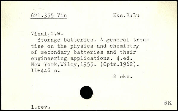 Storage batteries. A general treatise on the physics and chemistry of secondary batteries and their engineering applications.