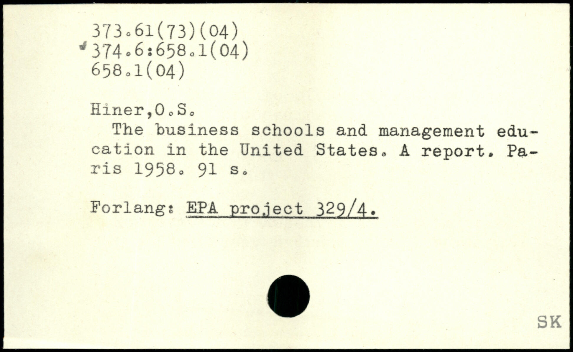 The business schools and management education in the United States, A report.