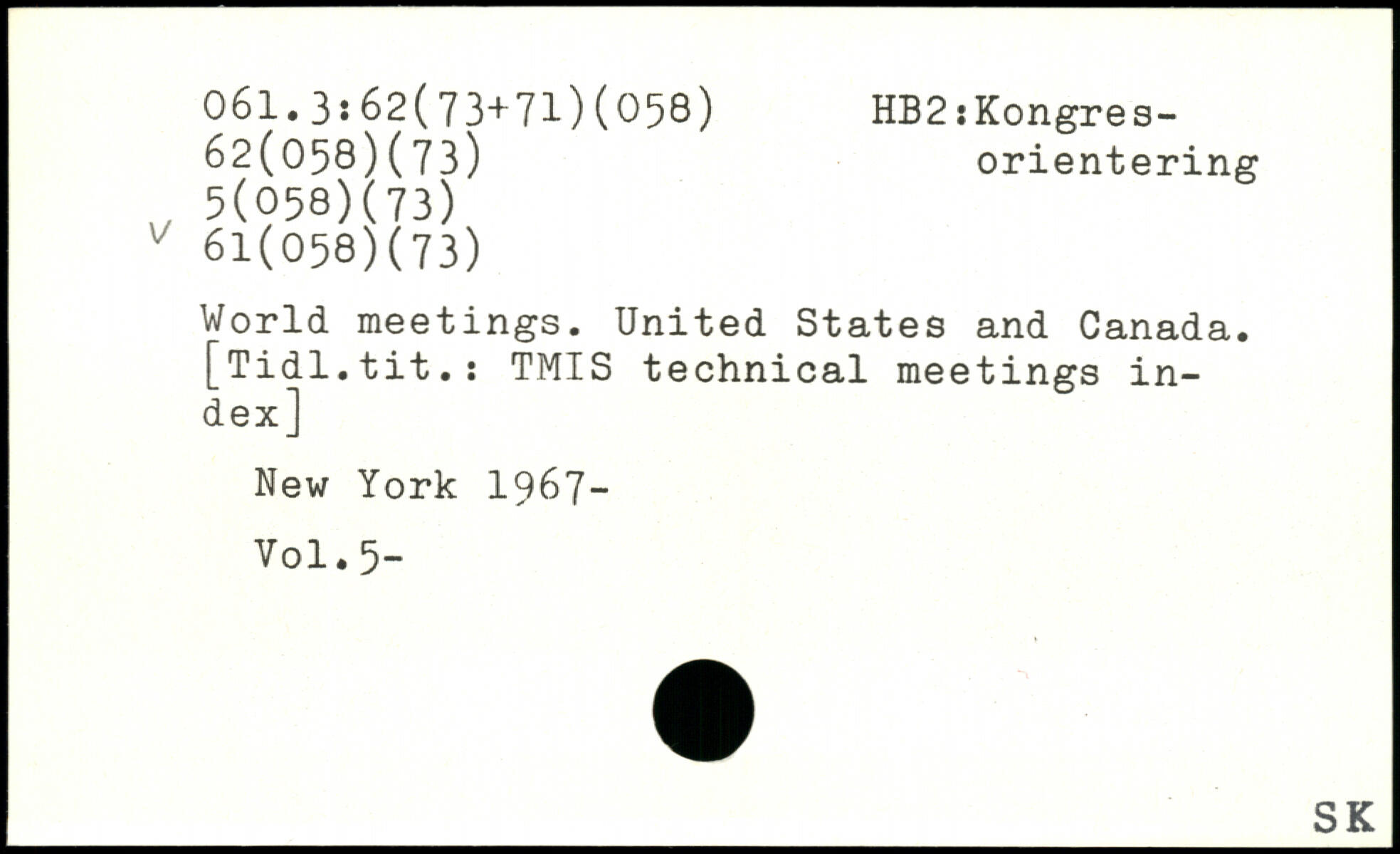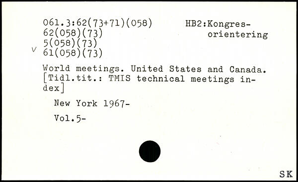 World meetings. United States and Canada. [Tidl.tit.: TMIS technical meetings index]
