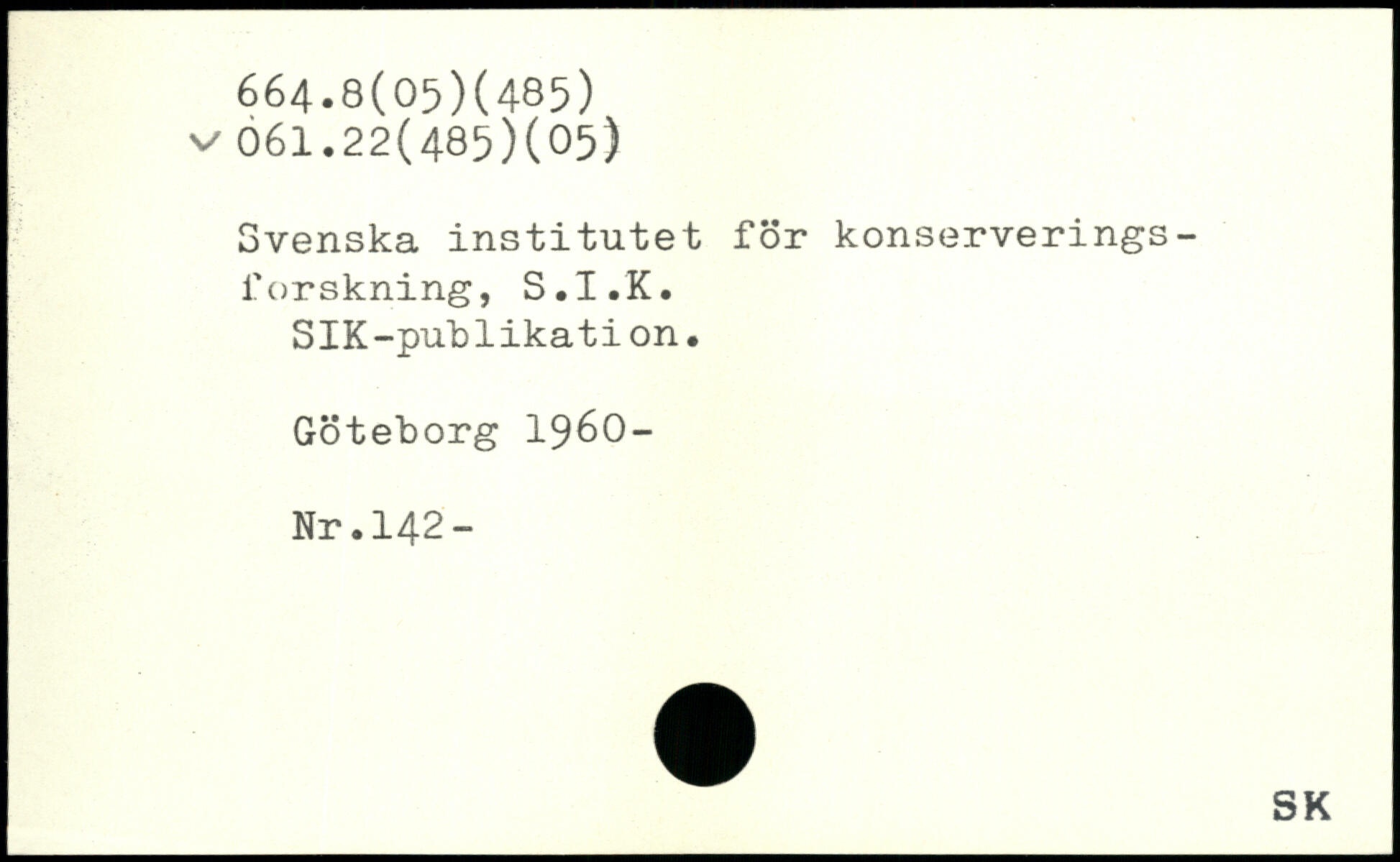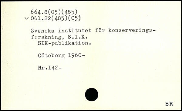 Svenska institutet för konserveringsforskning, S.I.K. SIK-publikation. Göteborg 1960- Nr.142-