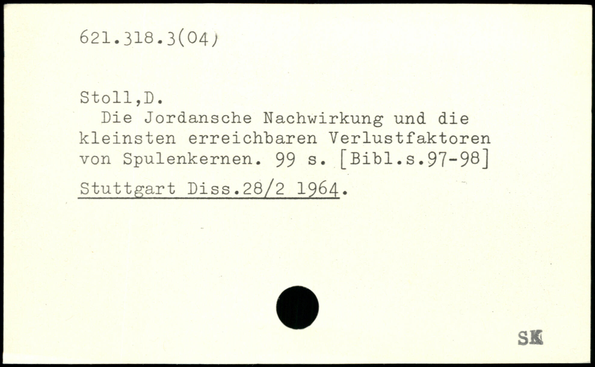 Die Jordansche Nachwirkung und die kleinsten erreichbaren Verlustfaktoren von Spulenkernen.