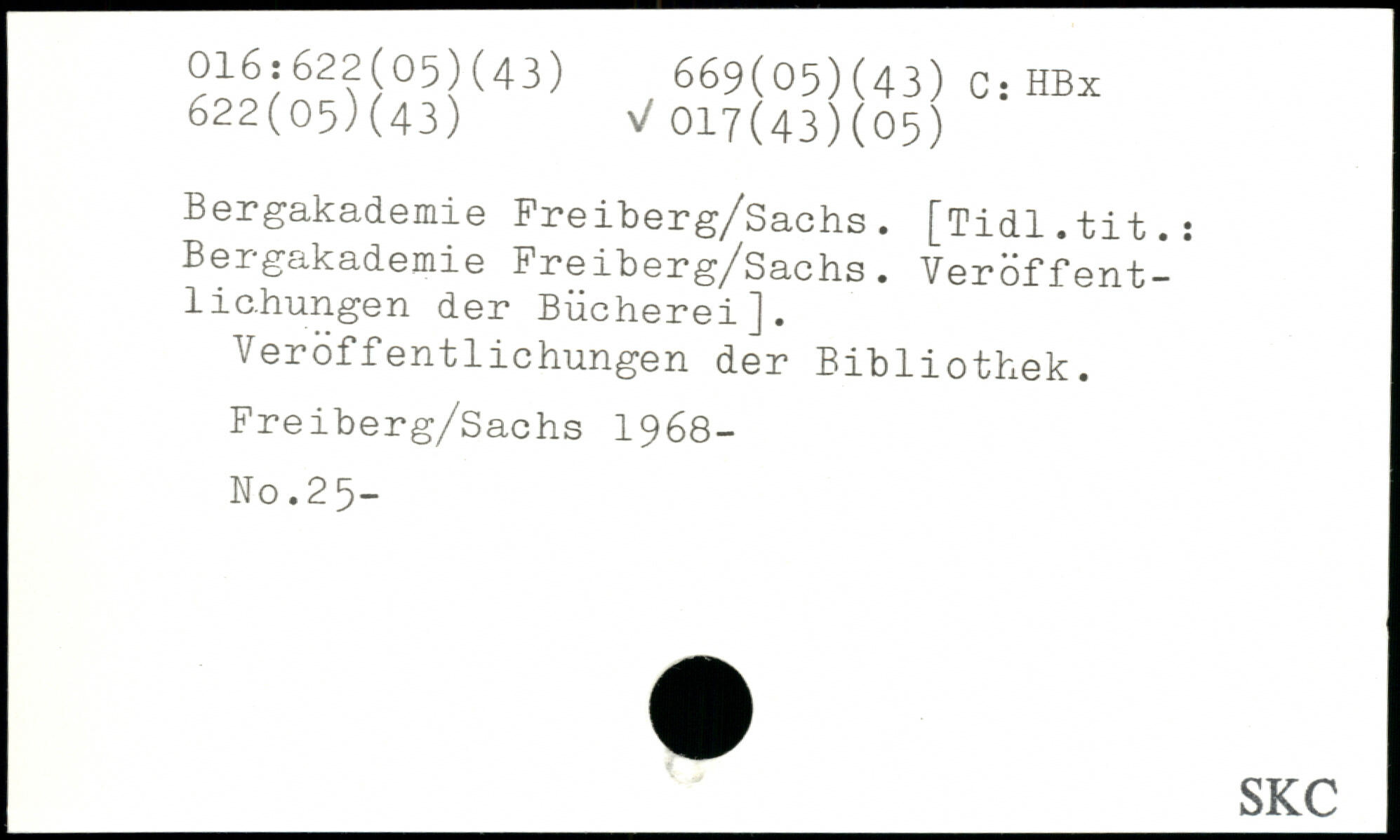 Bergakademie Freiberg/Sachs. [Tidl.tit.: Bergakademie Freiberg/Sachs. Veröffent-. lic.hungen der Bücherei]. Veröffentlichungen der Bibliothek. Freiberg/Sachs 1968- No.25-