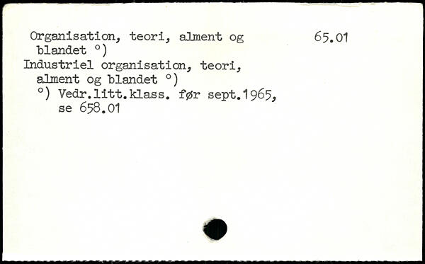 blandet .) Industriel organisation, teori, alment og blandet .) .) Vedr.litt.klass. før sept. 1965., se 658.OI