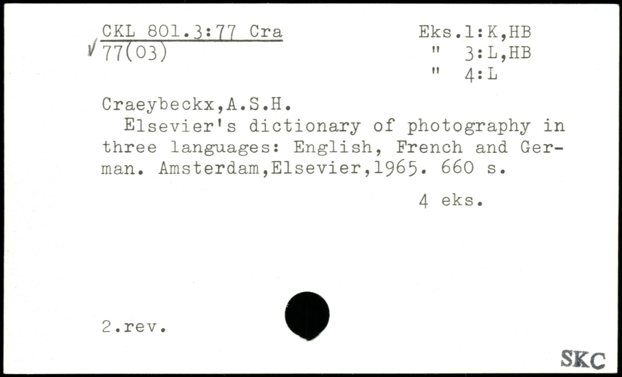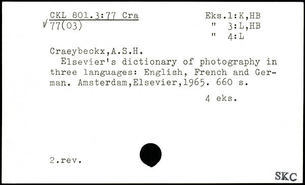 Elsevier’s dictionary of photography in three languages: English, French and German.