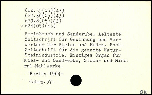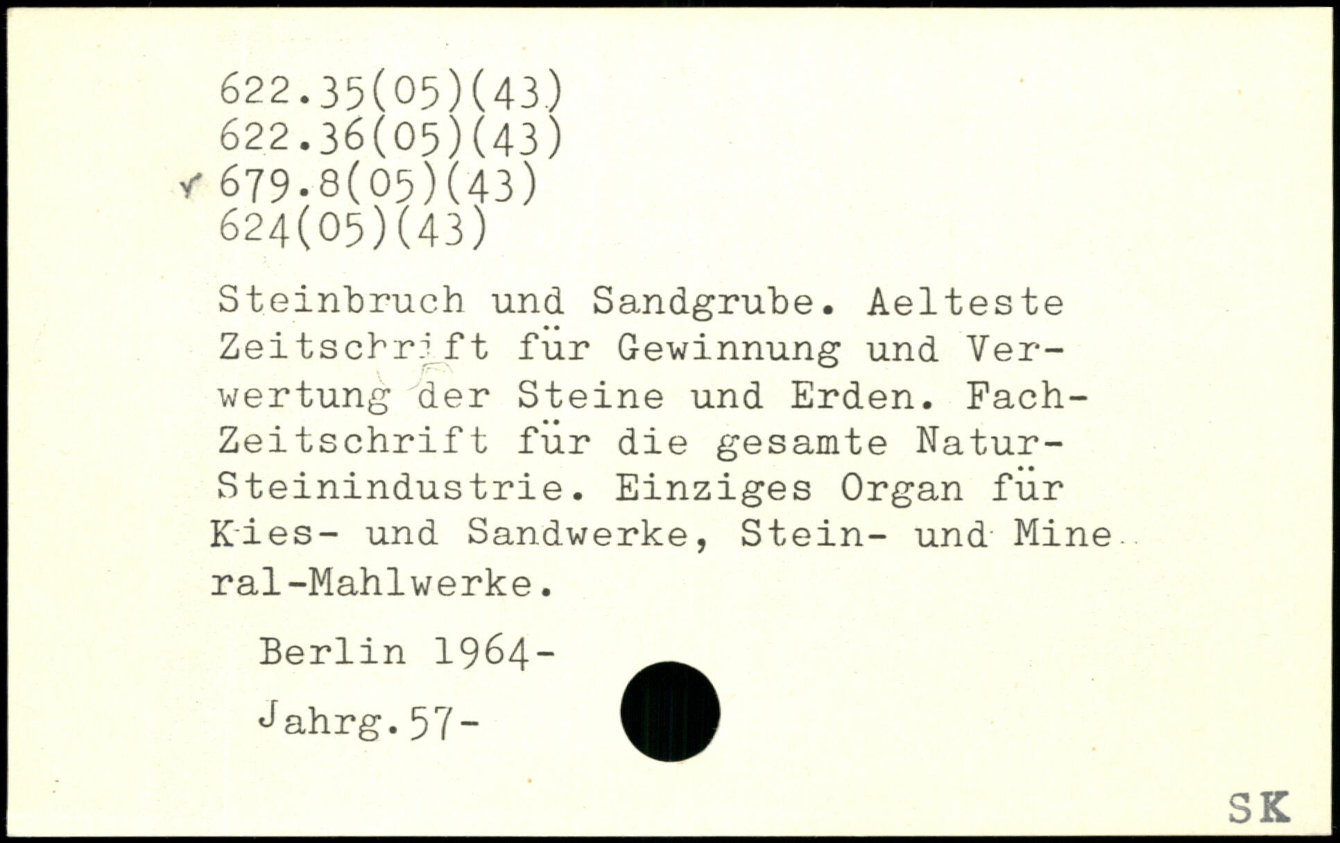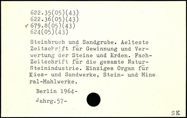 Steinbruch und Sandgrube. Aelteste Zeitschrift für Gewinnung und Verwertung der Steine und Erden. Fachzeitschrift für die gesamte Natur-Steinindustrie. Einziges Organ für Kies- und Sandwerke, Stein- und Mine ral-Mahlwerke.