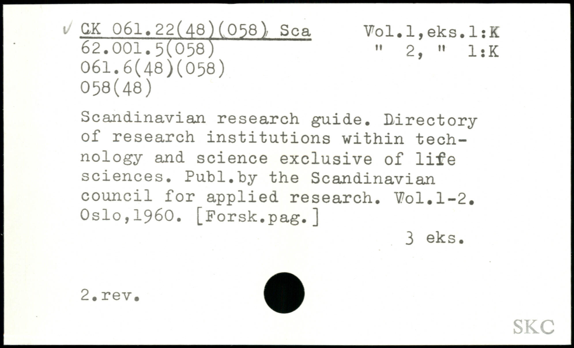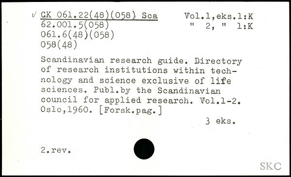 Scandinavian research guide. Birectory of research institutions within technology and science exclusive of life sciences.