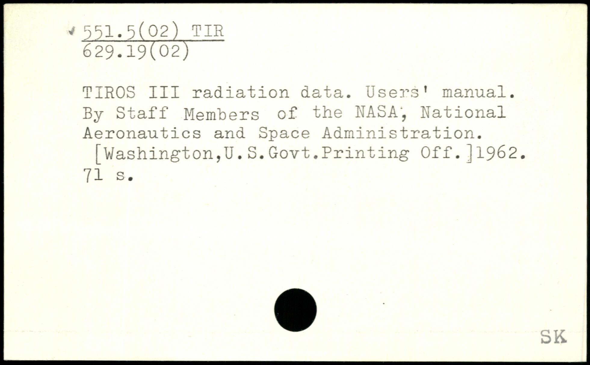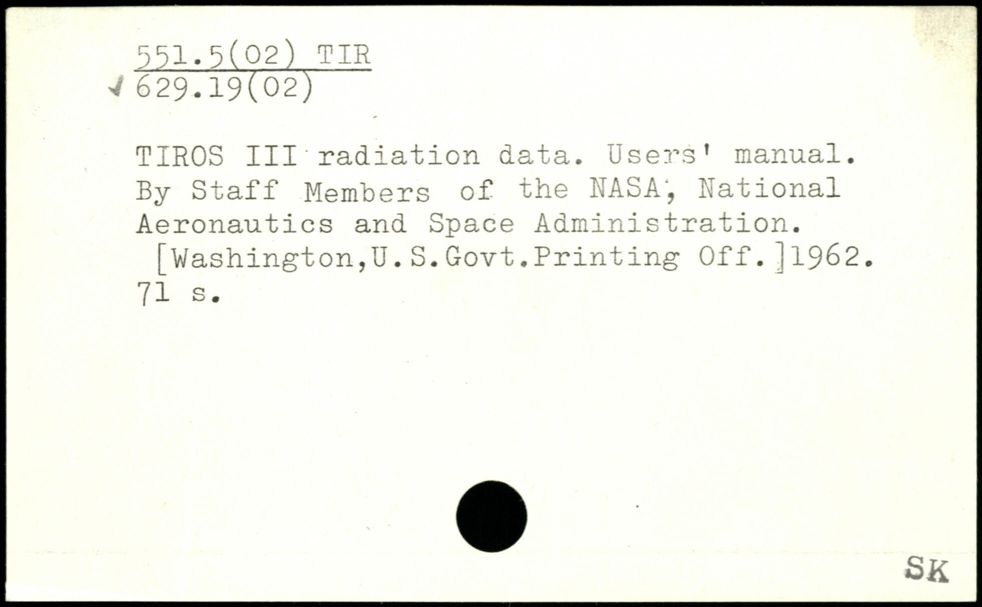 TIROS III radiation data. Users' manual. By Staff Members of the NASA, National Aeronautics and Space Administration.