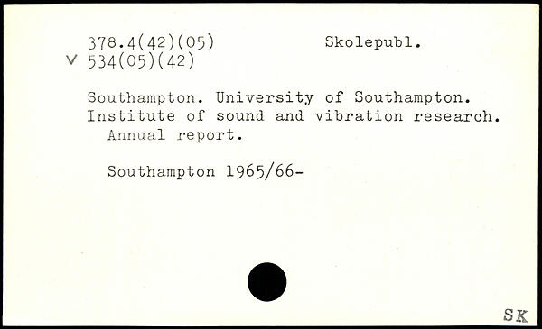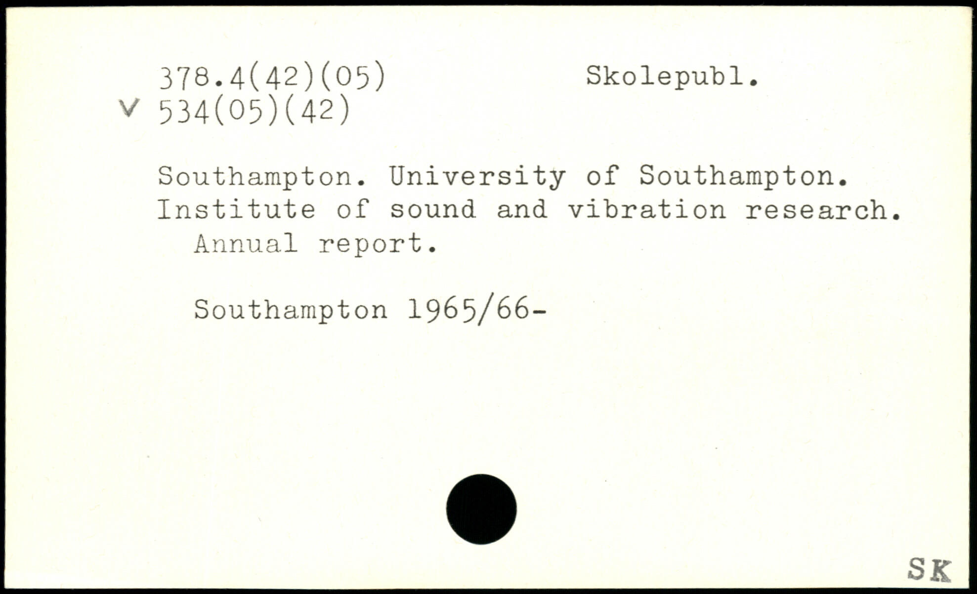 Southampton. University of Southampton. Institute of sound and vibration research. Annual report. Southampton 1965/66-