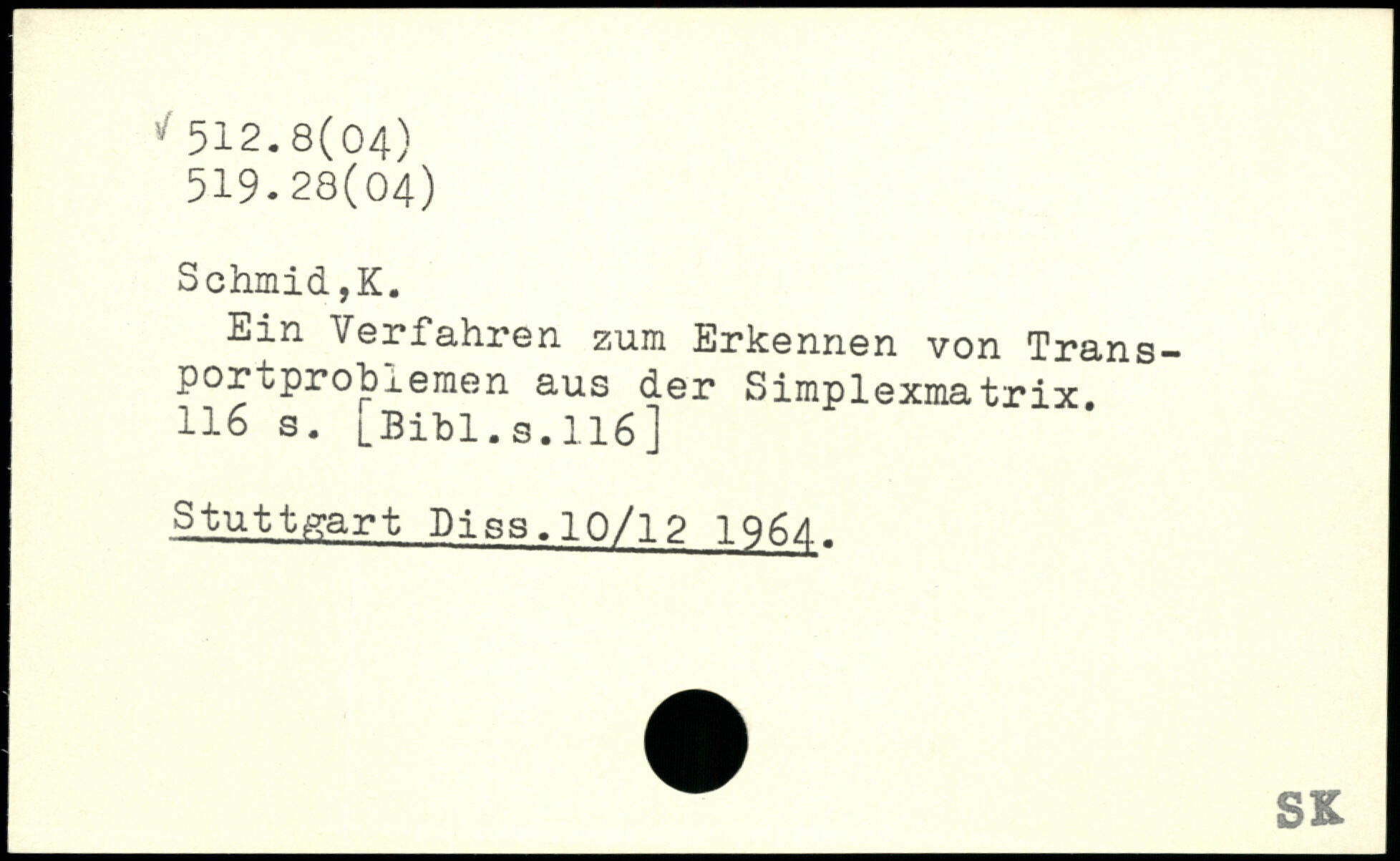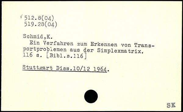 Ein Verfahren zum Erkennen von Trans-portprobfernen aus der Simplexmatrix