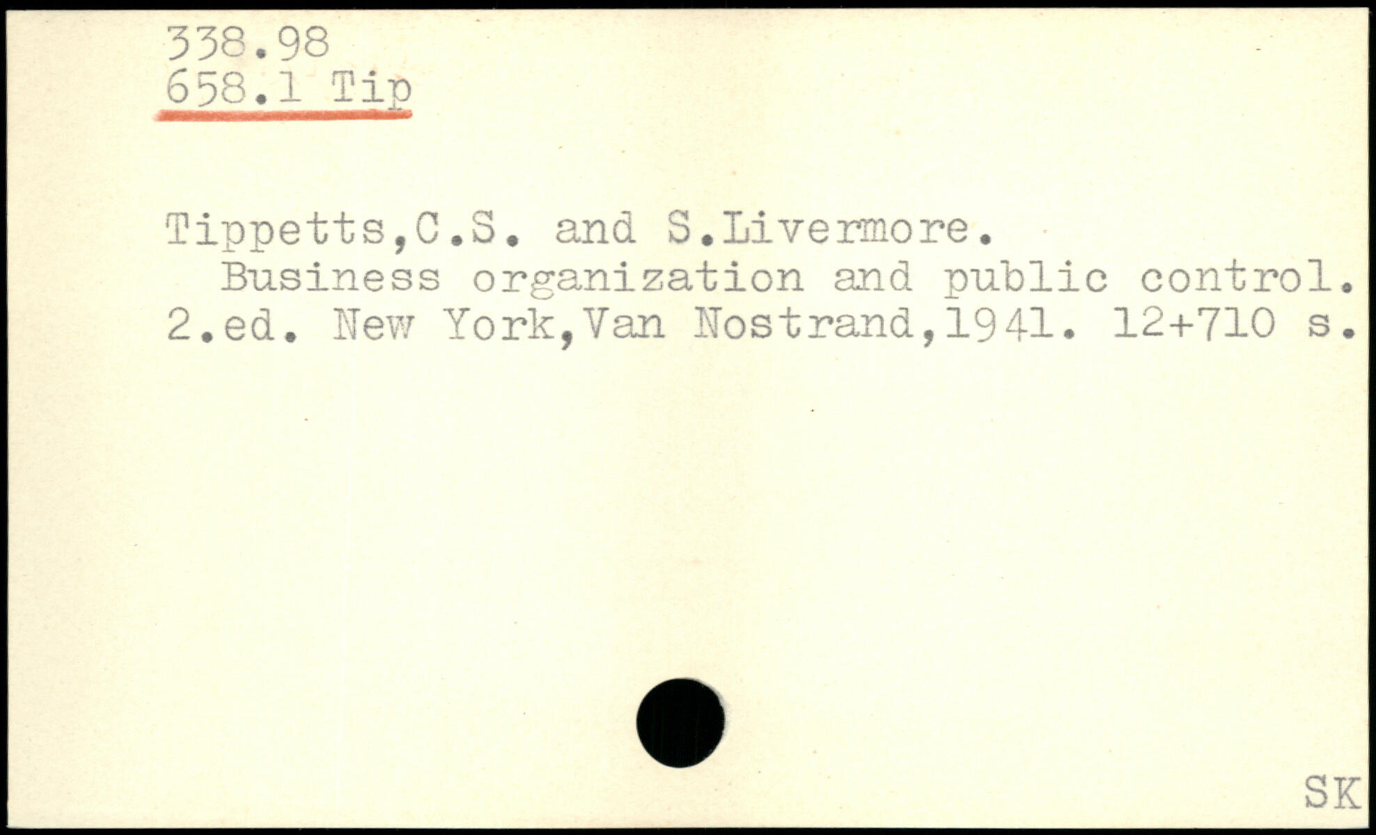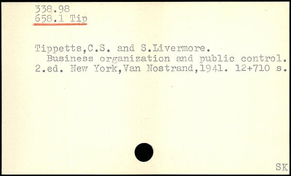 Tippetts,C,S. and S. Livermore. Business organization and public control.