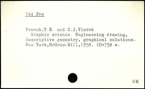 French,TEo and C=J,Vierck Graphic science, Engineering drawing, descriptive geometry, graphical solutions.