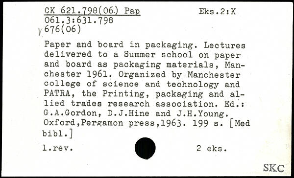 Paper and board in packaging. Lectures delivered to a Summer school on paper and board as packaging materials
