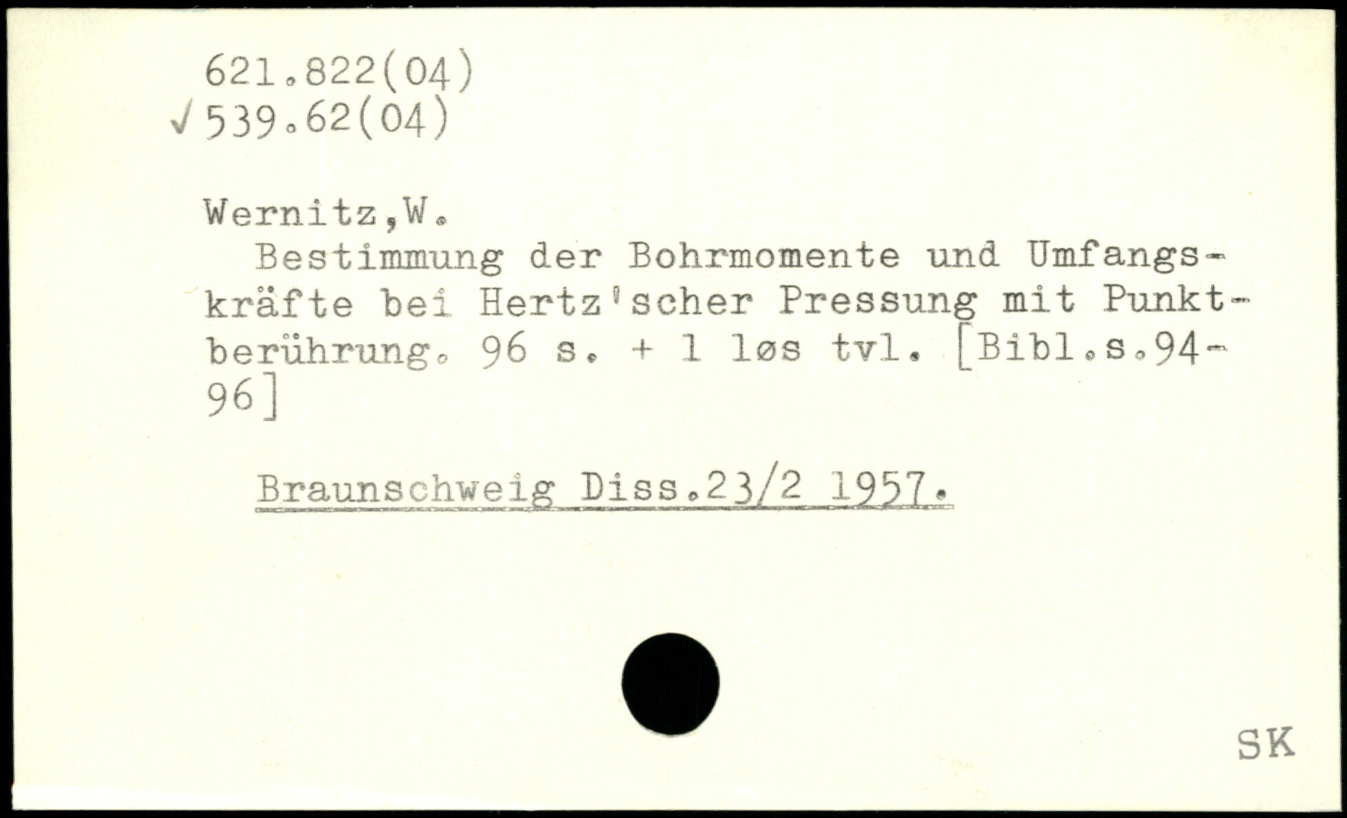 Bestimmung der Bohrmomente und Umfangskräfte bei Hertz“scher Pressung mit Punkt. beriihrungo