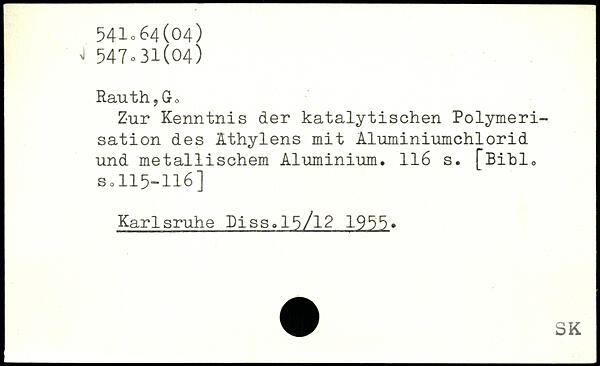 Zur Kenntnis der katalytischen Polymerisation des Äthylens mit Äluminiumchlorid und metallischem Aluminium.
