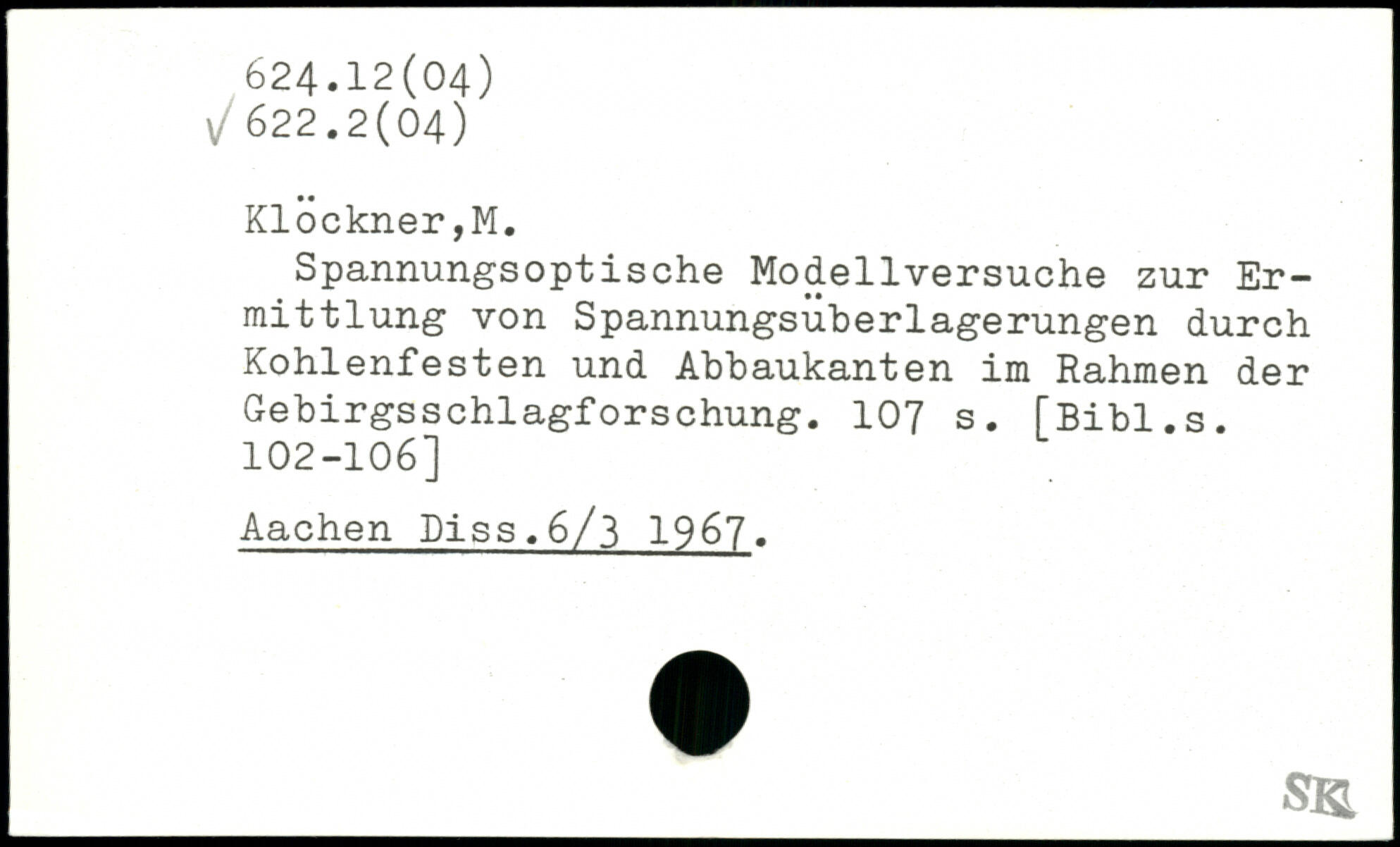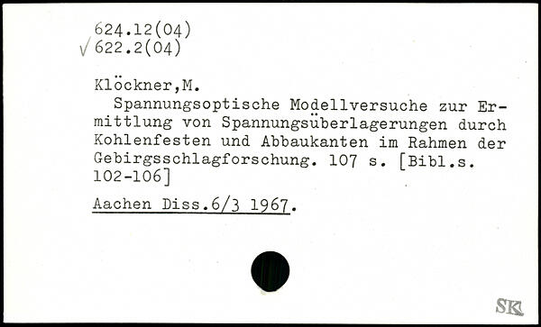 Spannungsoptische Modellversuche zur Ermittlung von Spannungsuberlagerungen durch Kohlenfesten und Abbaukanten im Rahmen der GebirgsSchlagforschung.