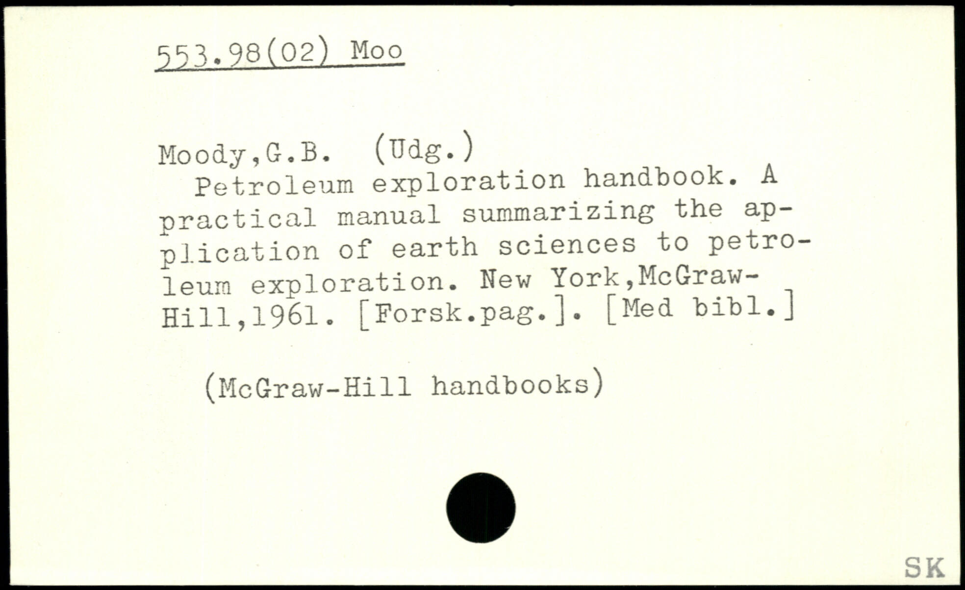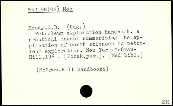 Moody,G.B. (ïïdg.) Petroleum exploration handbook. A nractical manual summarizing the application of earth sciences to petro- j leum exploration.