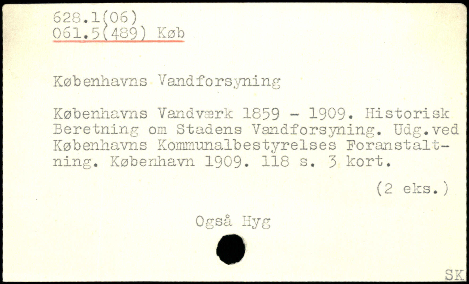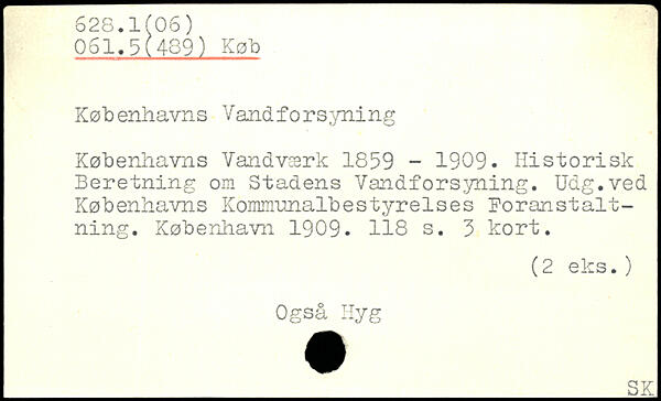 Københavns Vandforsyning Københavns Vandværk 1859 - 1909. Historisk Beretning om Stadens Vandforsyning. Udg.ved Københavns Kommunalbestyrelses Foranstaltning.