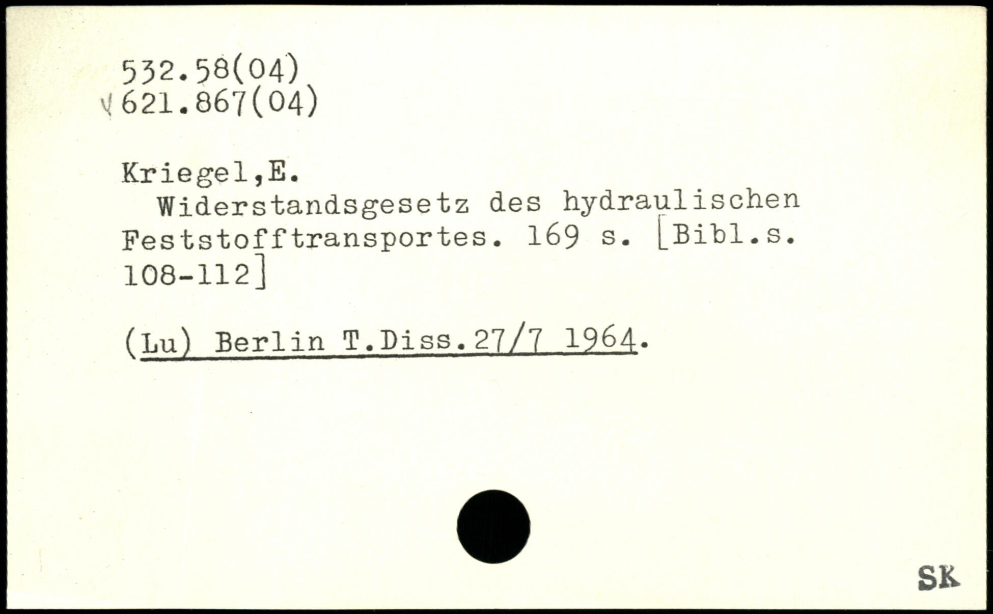 Widerstandsgesetz des hydraulischen Peststofftransportes.